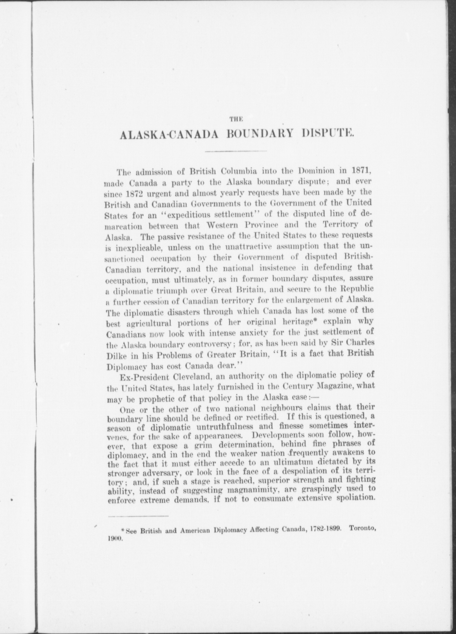 - The Alaska-Canada boundary dispute, under the Anglo-Russian treaty of 1825, the Russian-American Alaska treaty of 1867, and the Anglo- American conventions of 1892, 1894 and 1897 : an historical and legal review