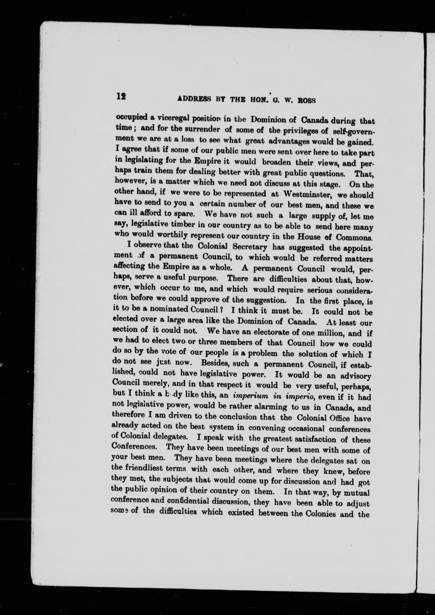 - Addresses delivered by Hon. G.W. Ross during his recent visit to England and at the meeting on his return.