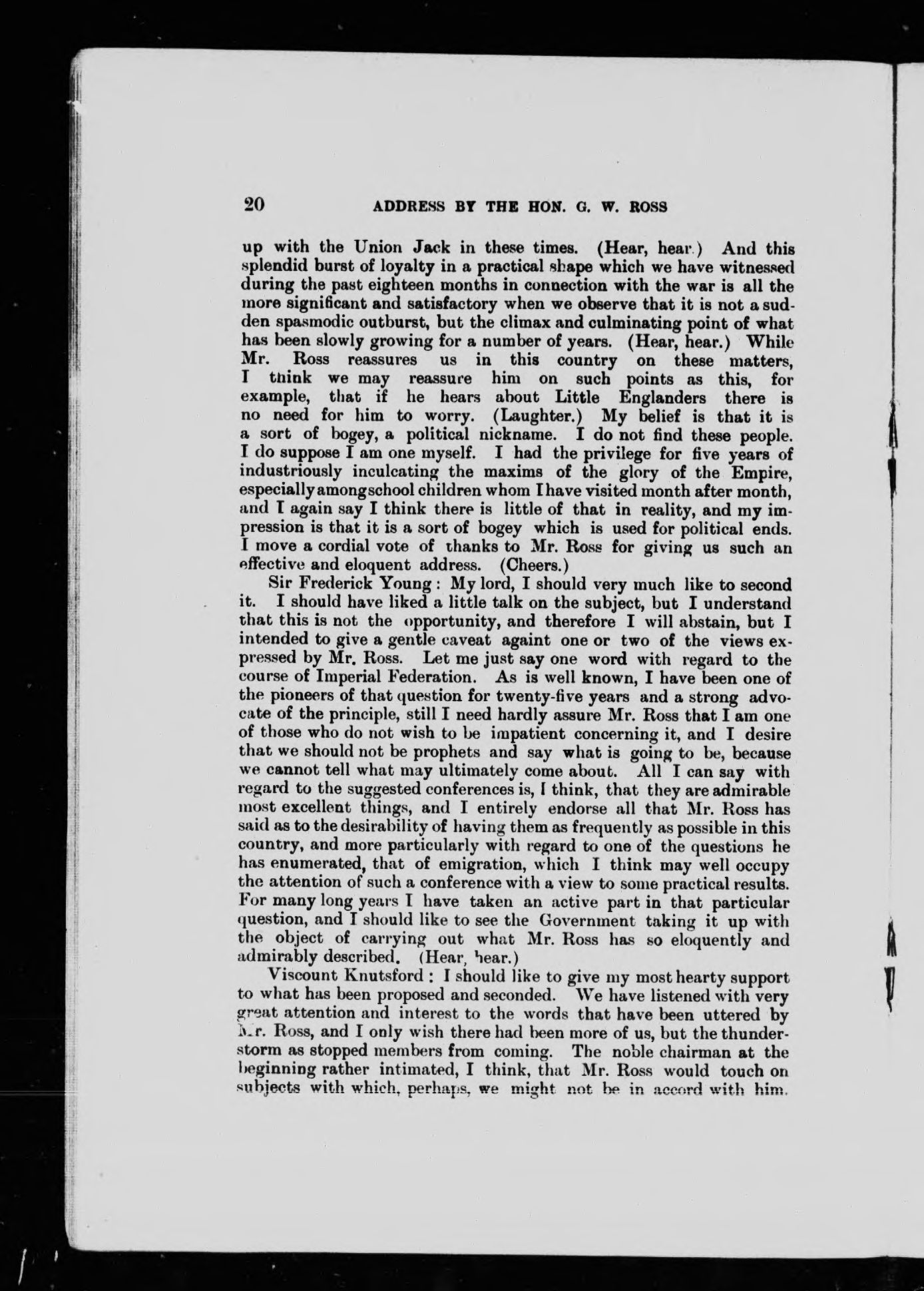 - Addresses delivered by Hon. G.W. Ross during his recent visit to England and at the meeting on his return.