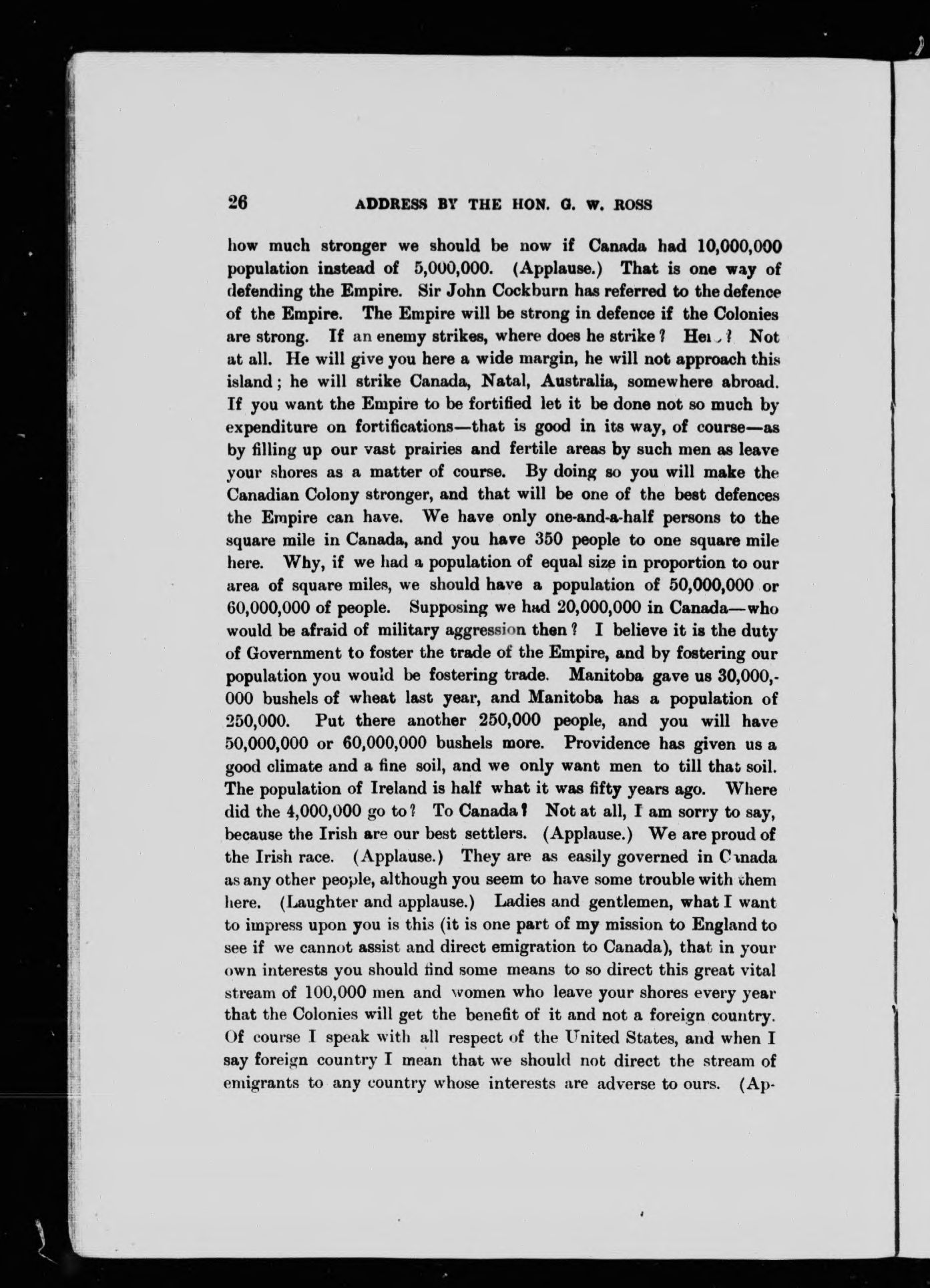 - Addresses delivered by Hon. G.W. Ross during his recent visit to England and at the meeting on his return.