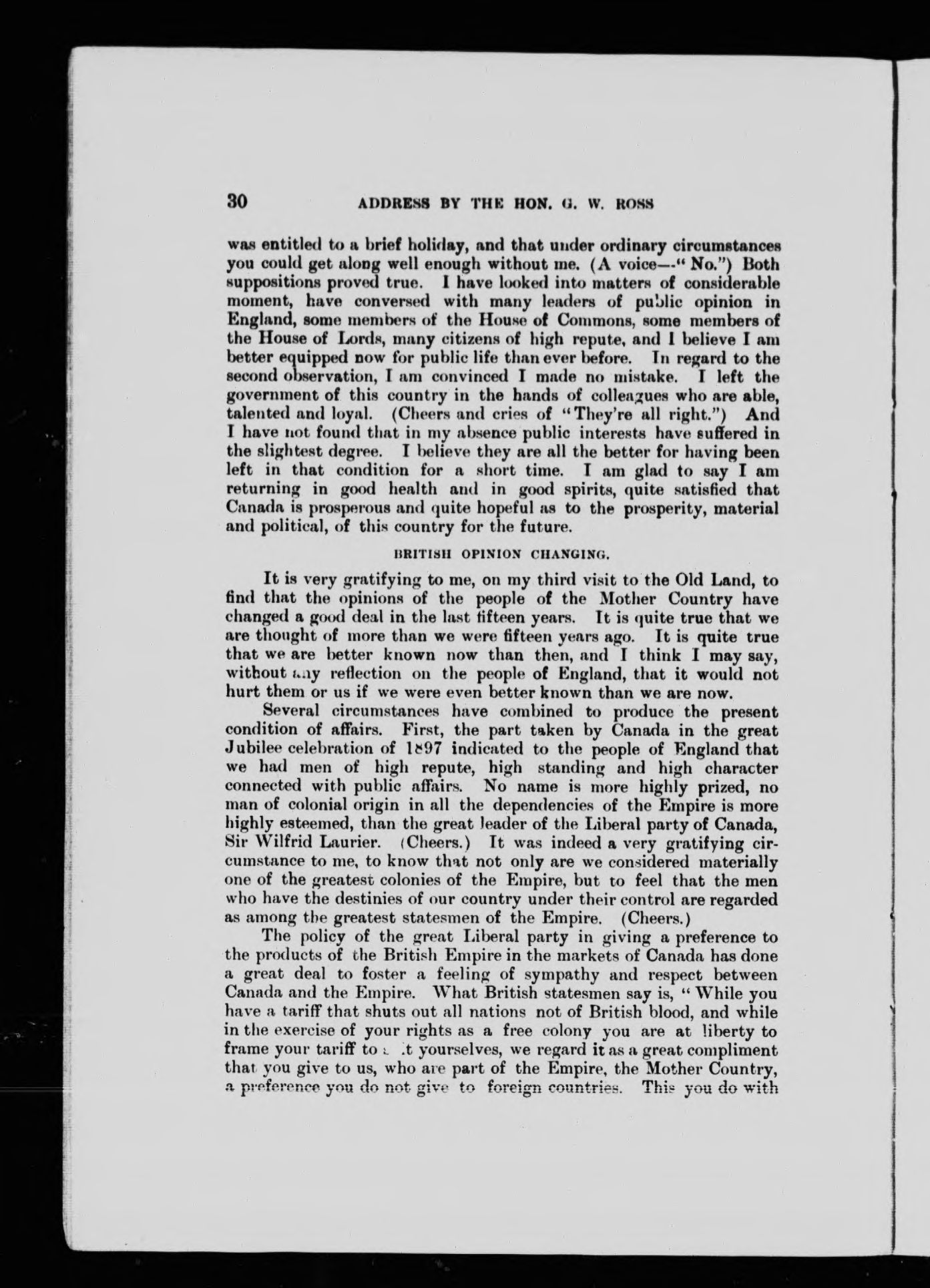 - Addresses delivered by Hon. G.W. Ross during his recent visit to England and at the meeting on his return.