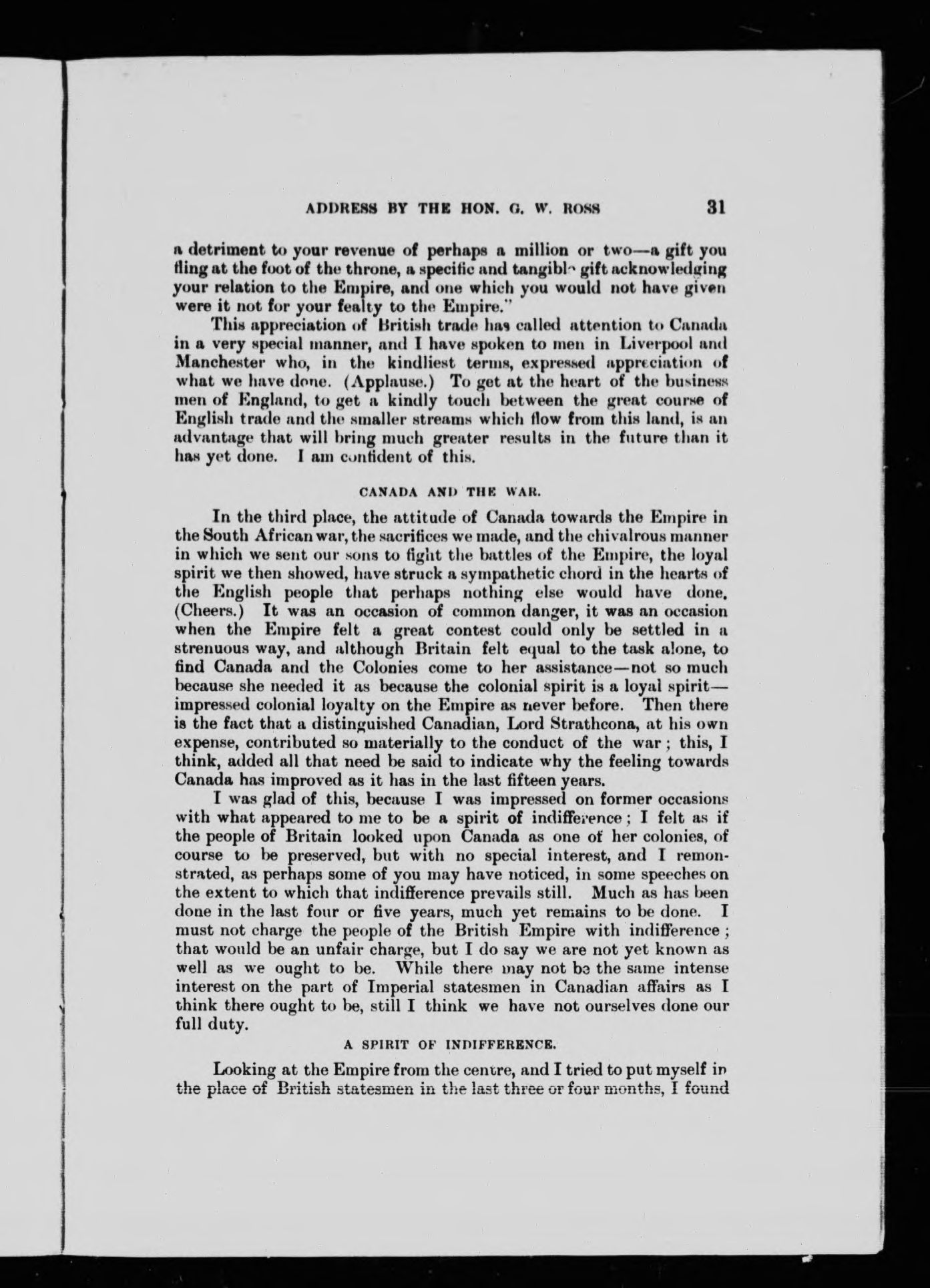 - Addresses delivered by Hon. G.W. Ross during his recent visit to England and at the meeting on his return.