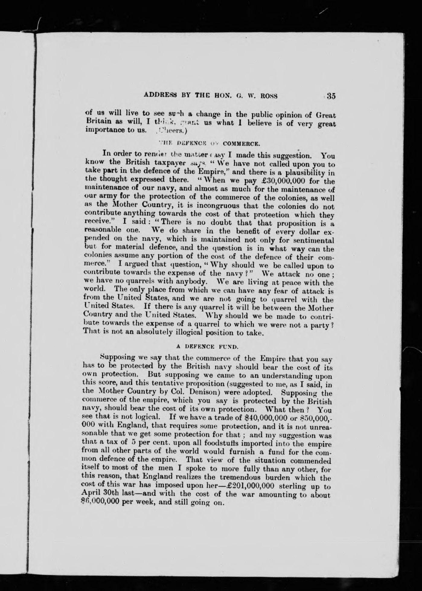 - Addresses delivered by Hon. G.W. Ross during his recent visit to England and at the meeting on his return.