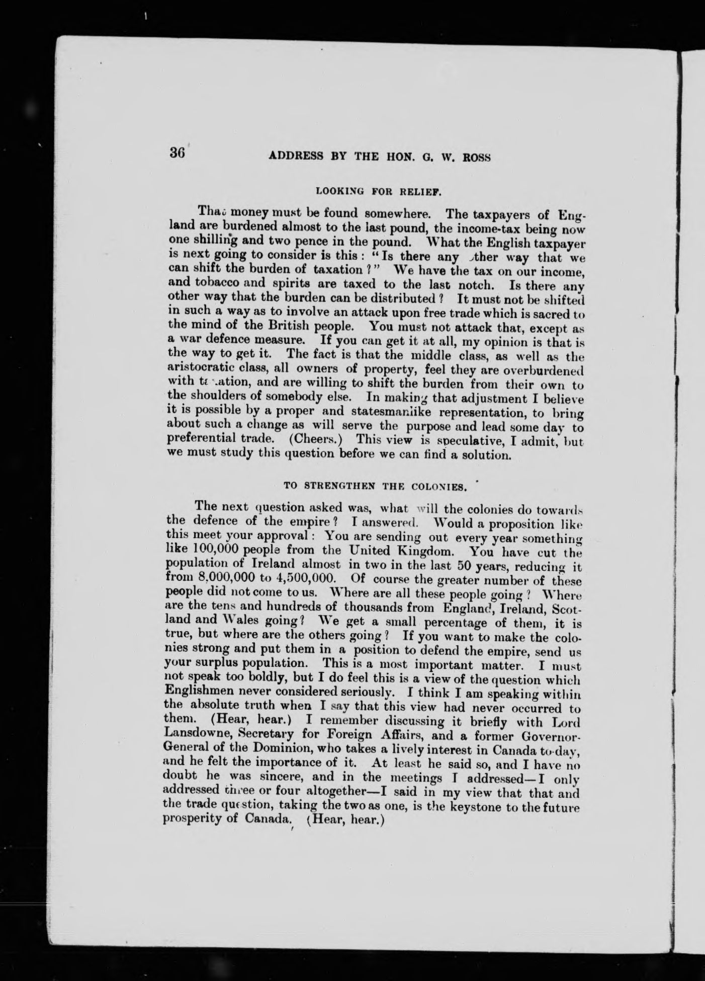 - Addresses delivered by Hon. G.W. Ross during his recent visit to England and at the meeting on his return.