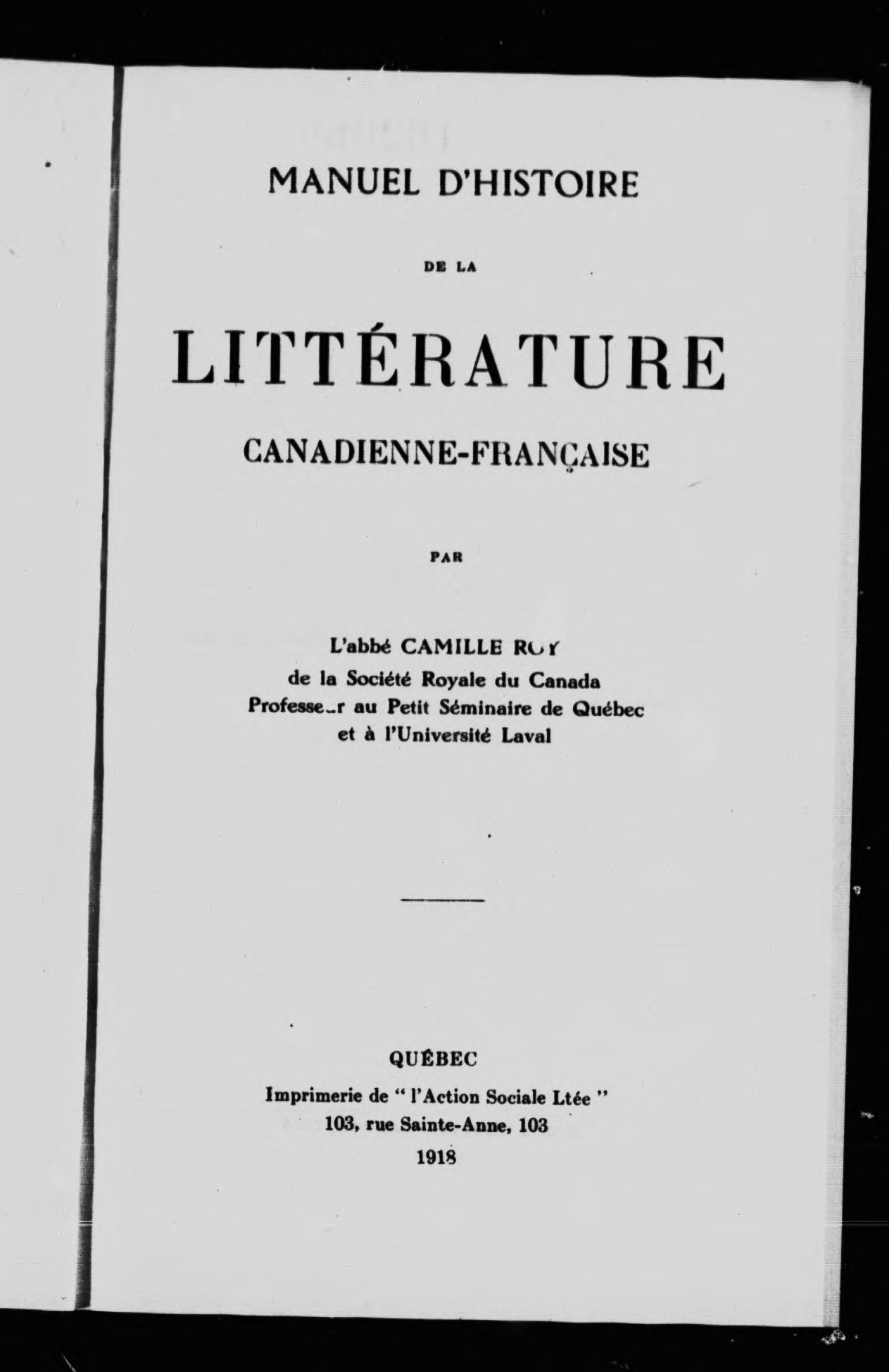 Littérature canadienne-française -- Histoire et critique. - Document original