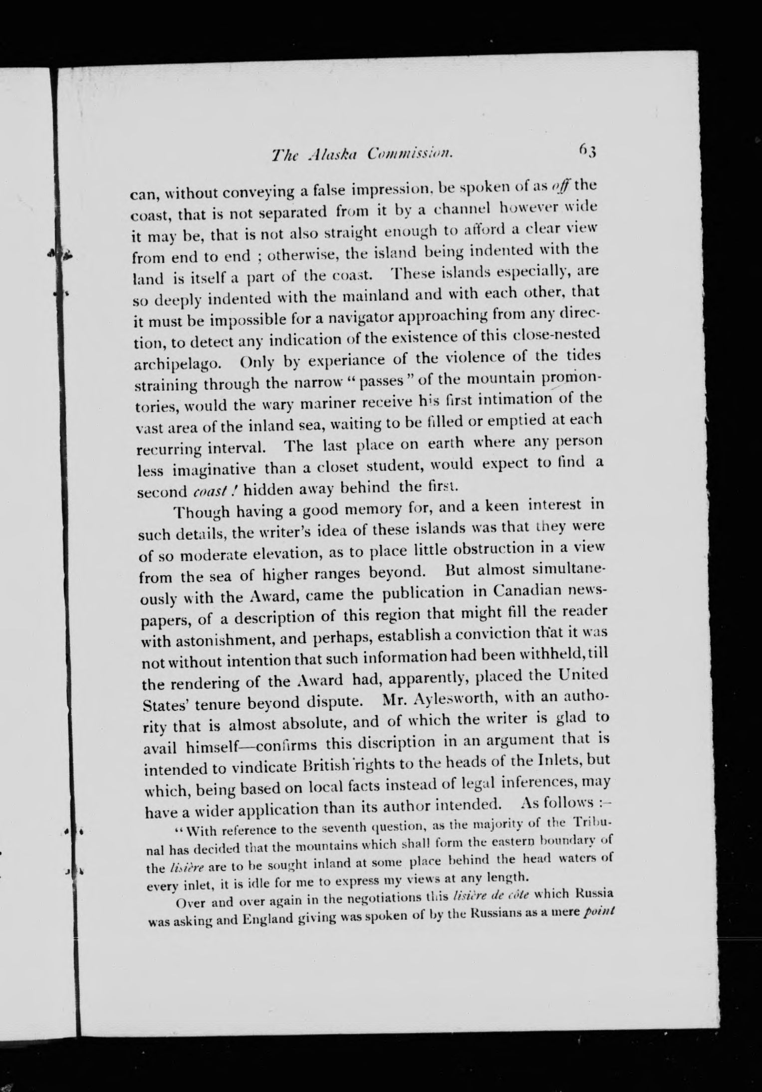 - Canada's Alaskan dismemberment : an analytical examination of the fallacies underlying the tribunal award.