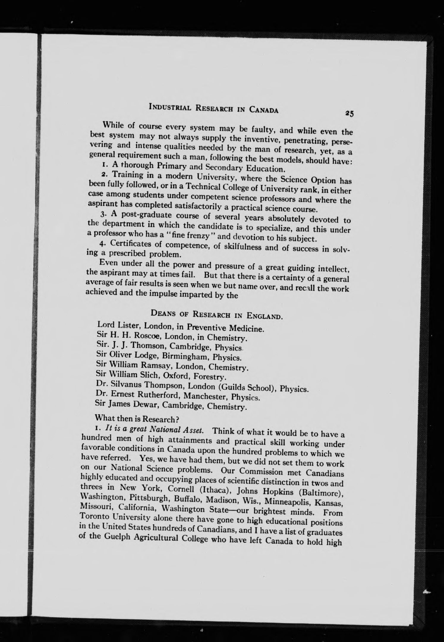 Co-operation between science and industry in Canada : the Royal Canadian Institute as an intermediary for its promotion : establishment of a bureau of scientific and industrial research