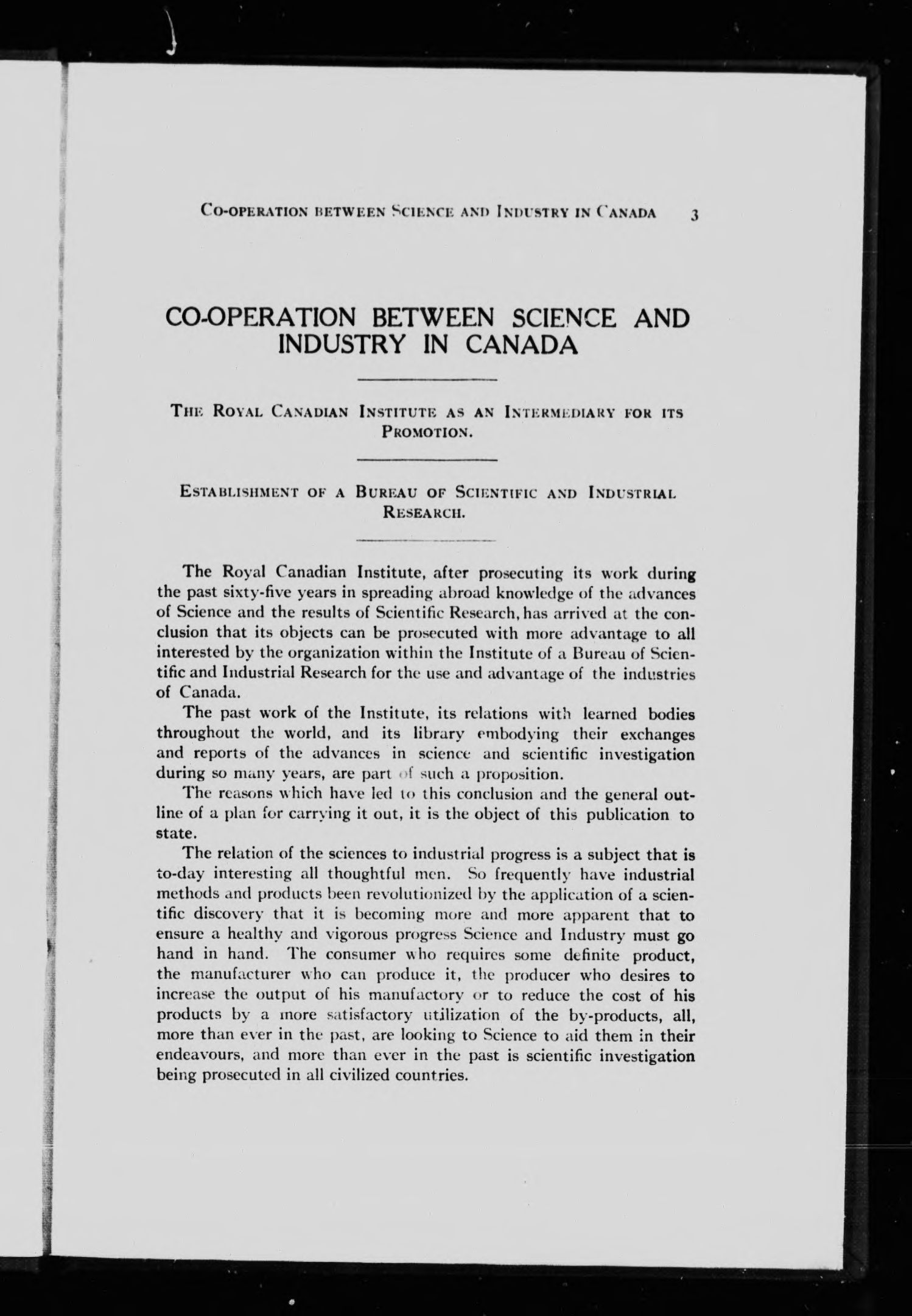 Co-operation between science and industry in Canada : the Royal Canadian Institute as an intermediary for its promotion : establishment of a bureau of scientific and industrial research - Adresse bibliographique