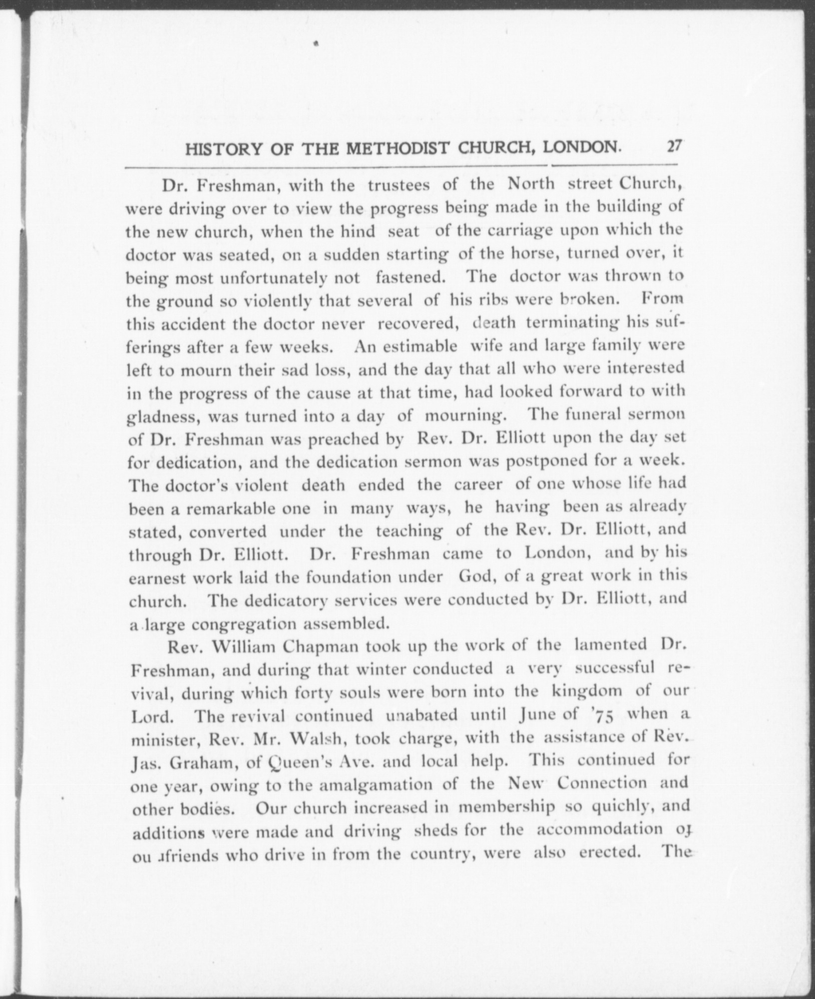 History of the Methodist Church in London, Canada from 1820 to 1905.