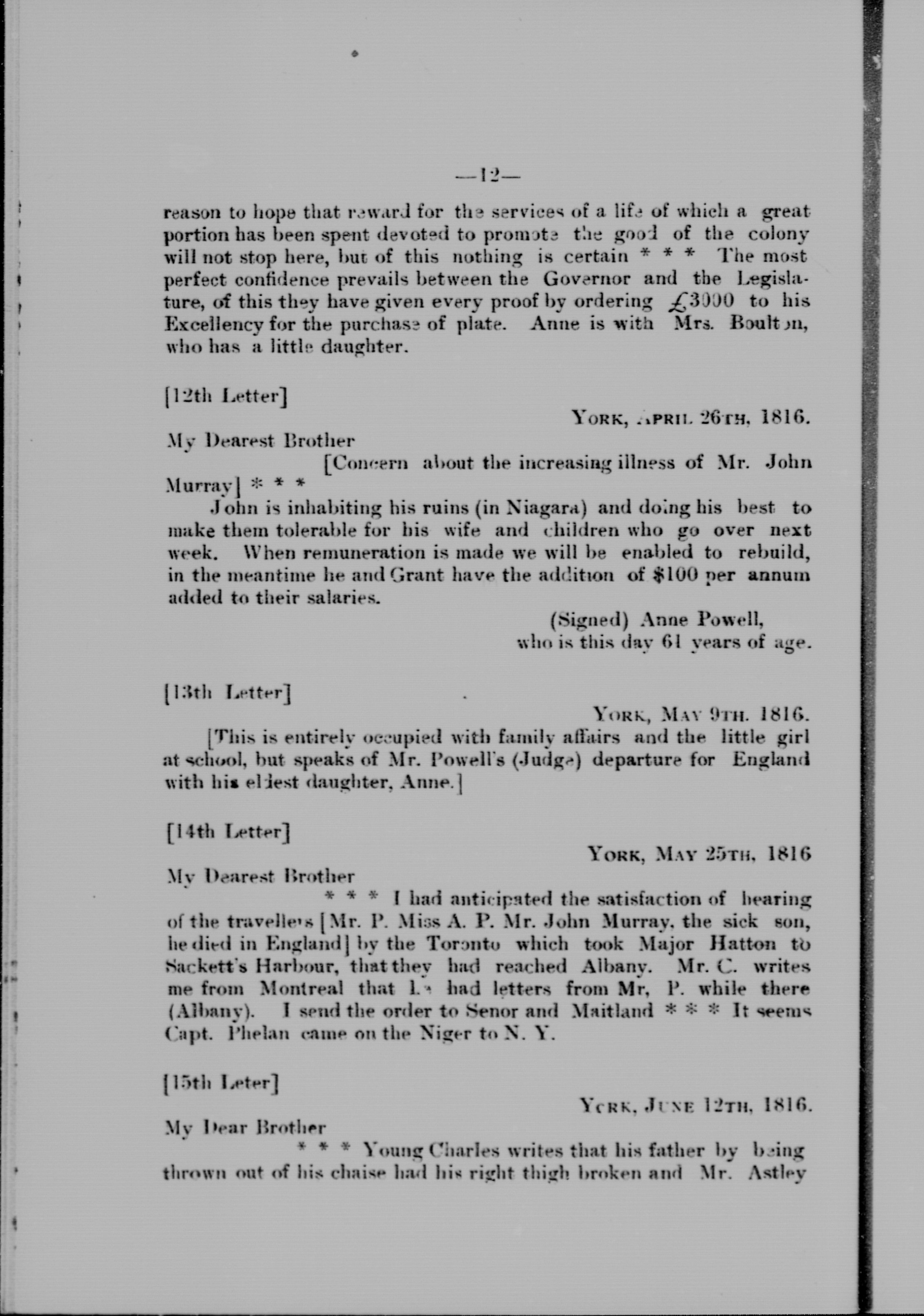 Letters of Mrs. Wm. Dummer Powell, 1807-1821.