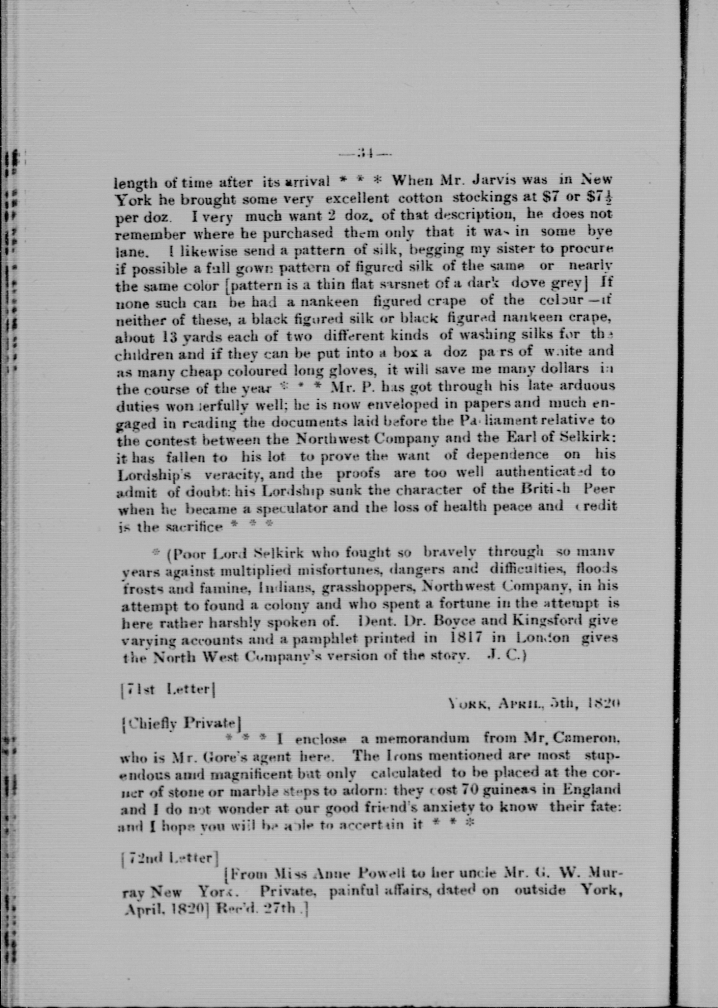 Letters of Mrs. Wm. Dummer Powell, 1807-1821. - Adresse bibliographique