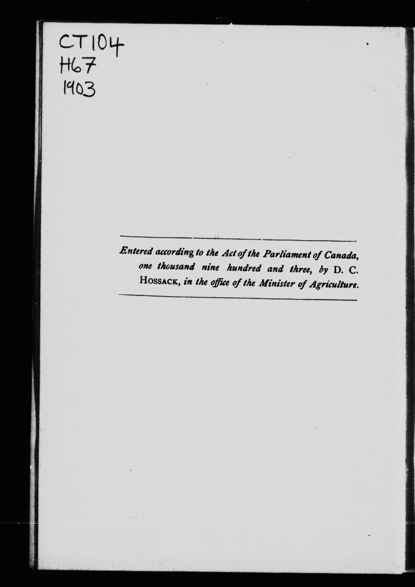 - Hossack, D. C. (Donald Calvin), 1862-1937., author