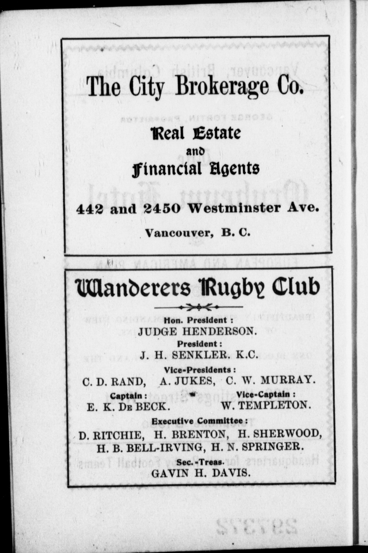 Rugby football -- British Columbia -- Vancouver -- Clubs.