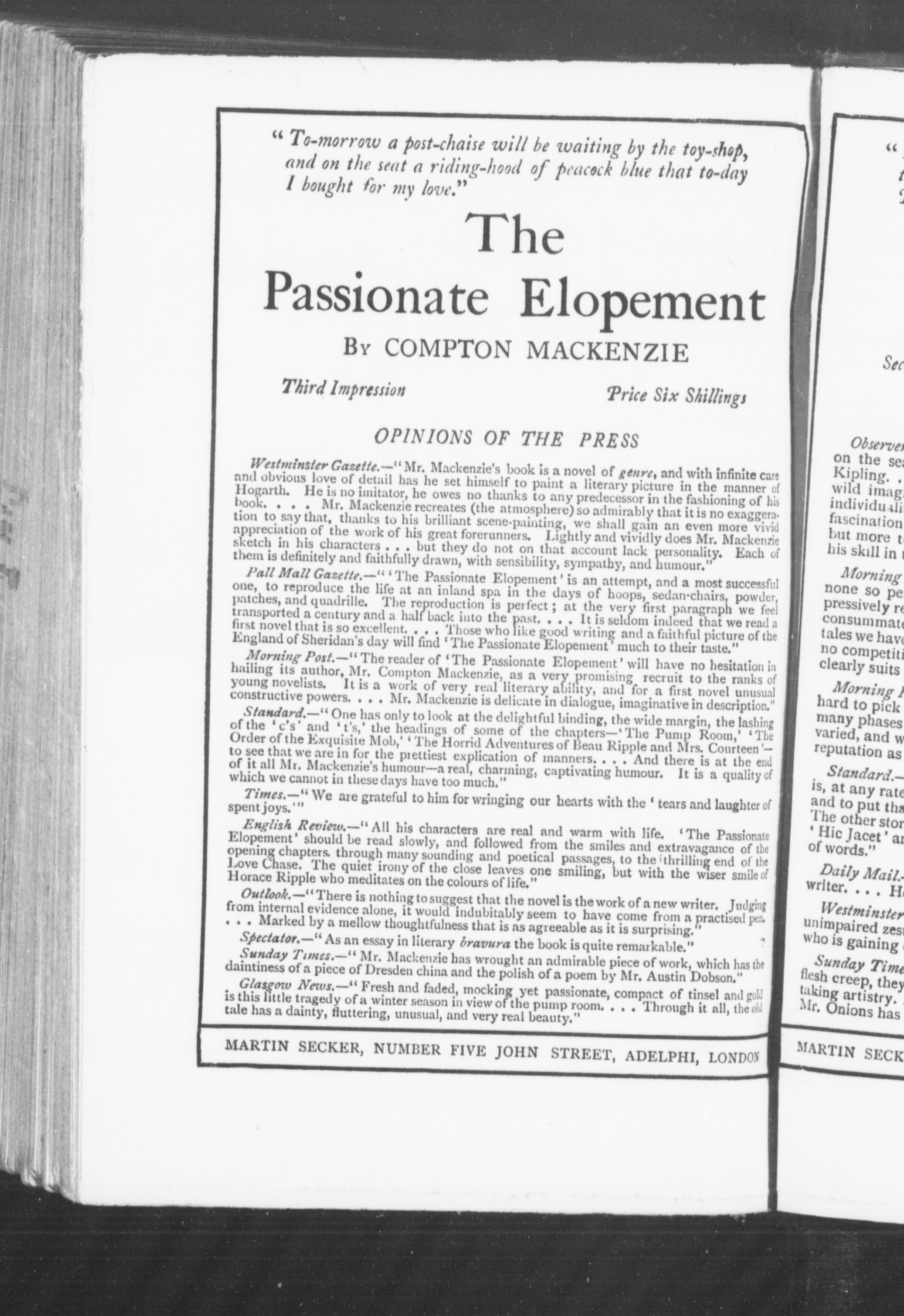 London : M. Secker, 1912.; 323 images, 322 avec recherche en texte intégral