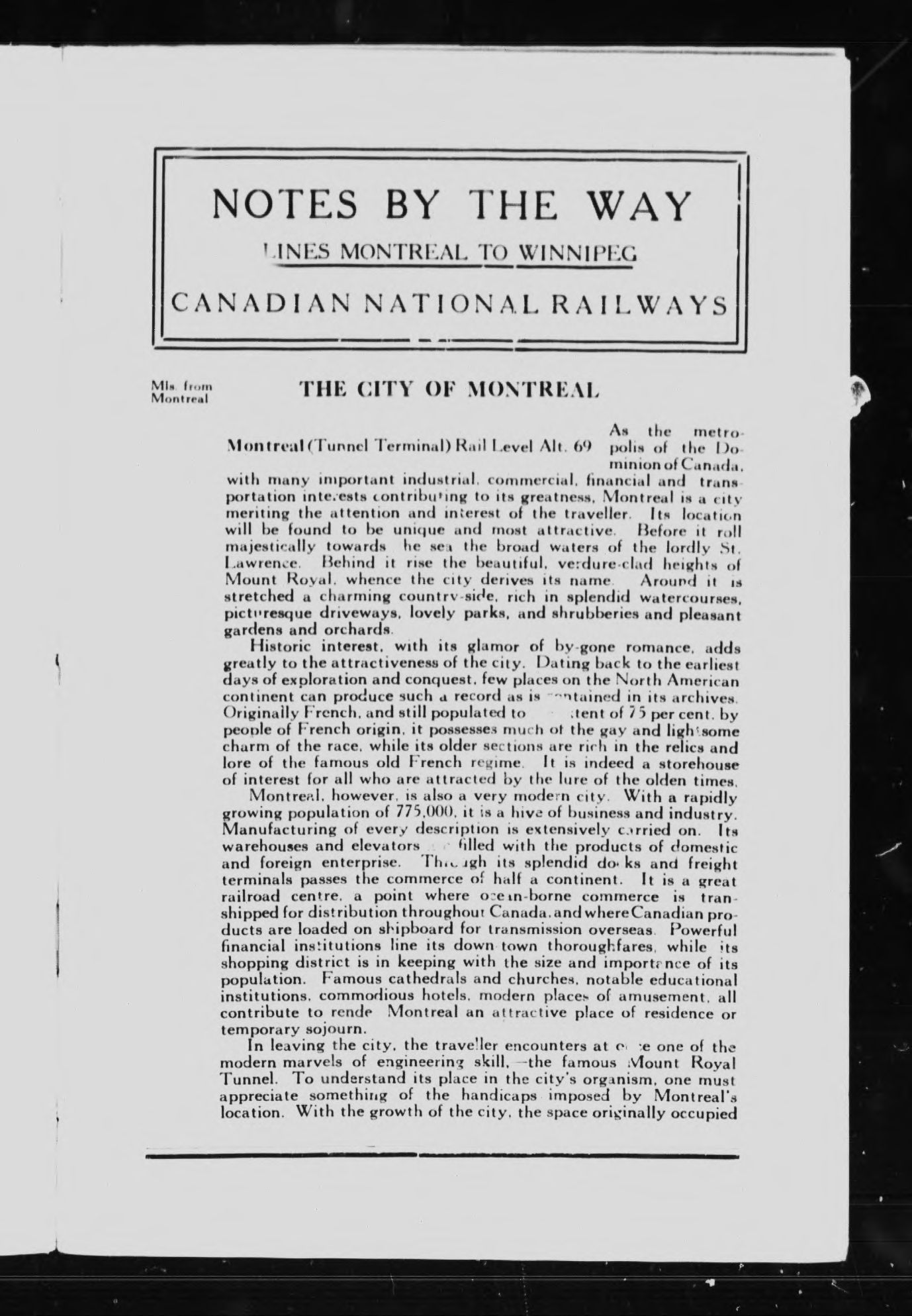 Notes by the way : Montreal to Winnipeg via Ottawa River Valley, Ottawa, Toronto, Muskoka, Capreol, Lake Superior, Port Arthur, Fort William.
