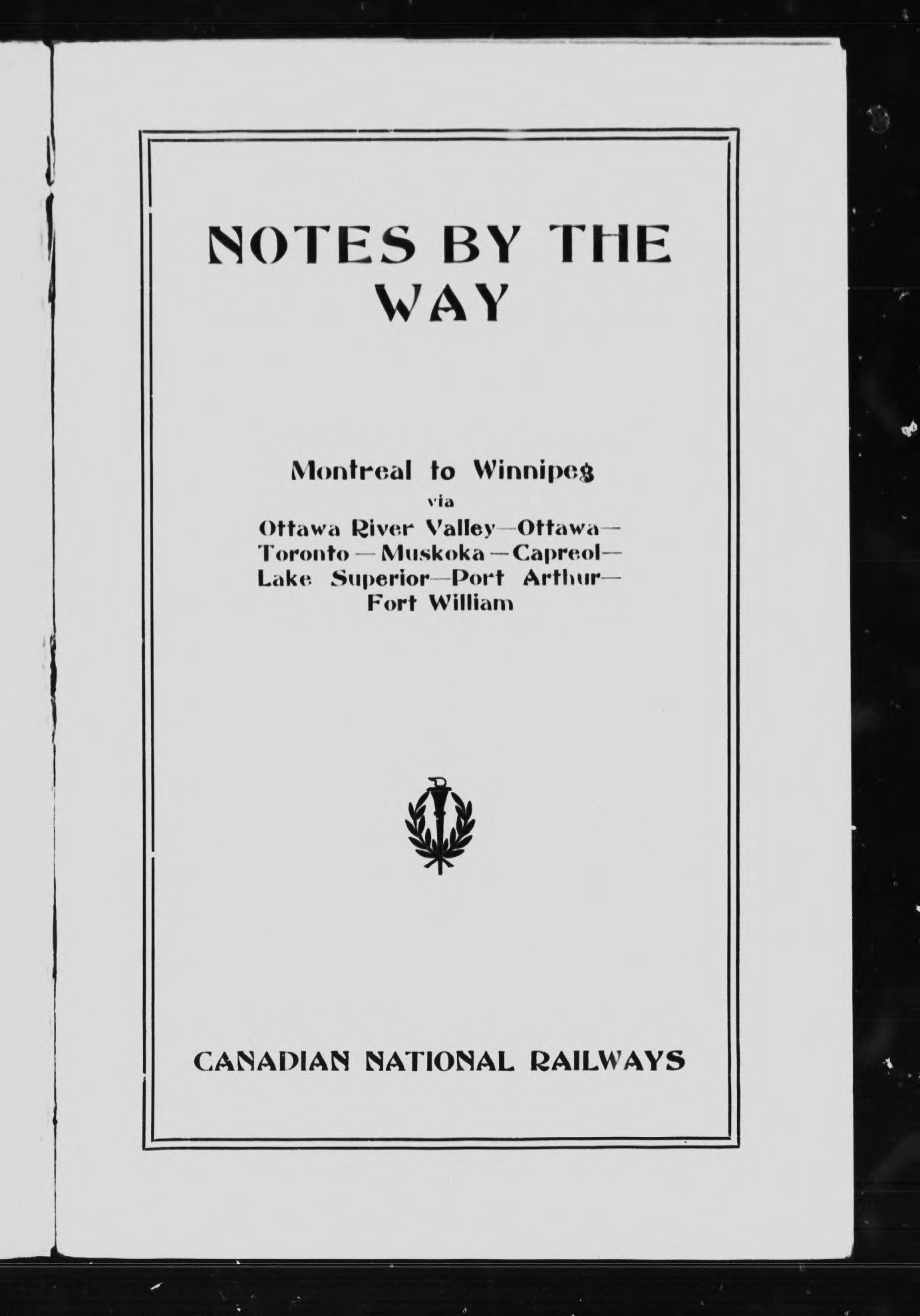 Notes by the way : Montreal to Winnipeg via Ottawa River Valley, Ottawa, Toronto, Muskoka, Capreol, Lake Superior, Port Arthur, Fort William. - Adresse bibliographique
