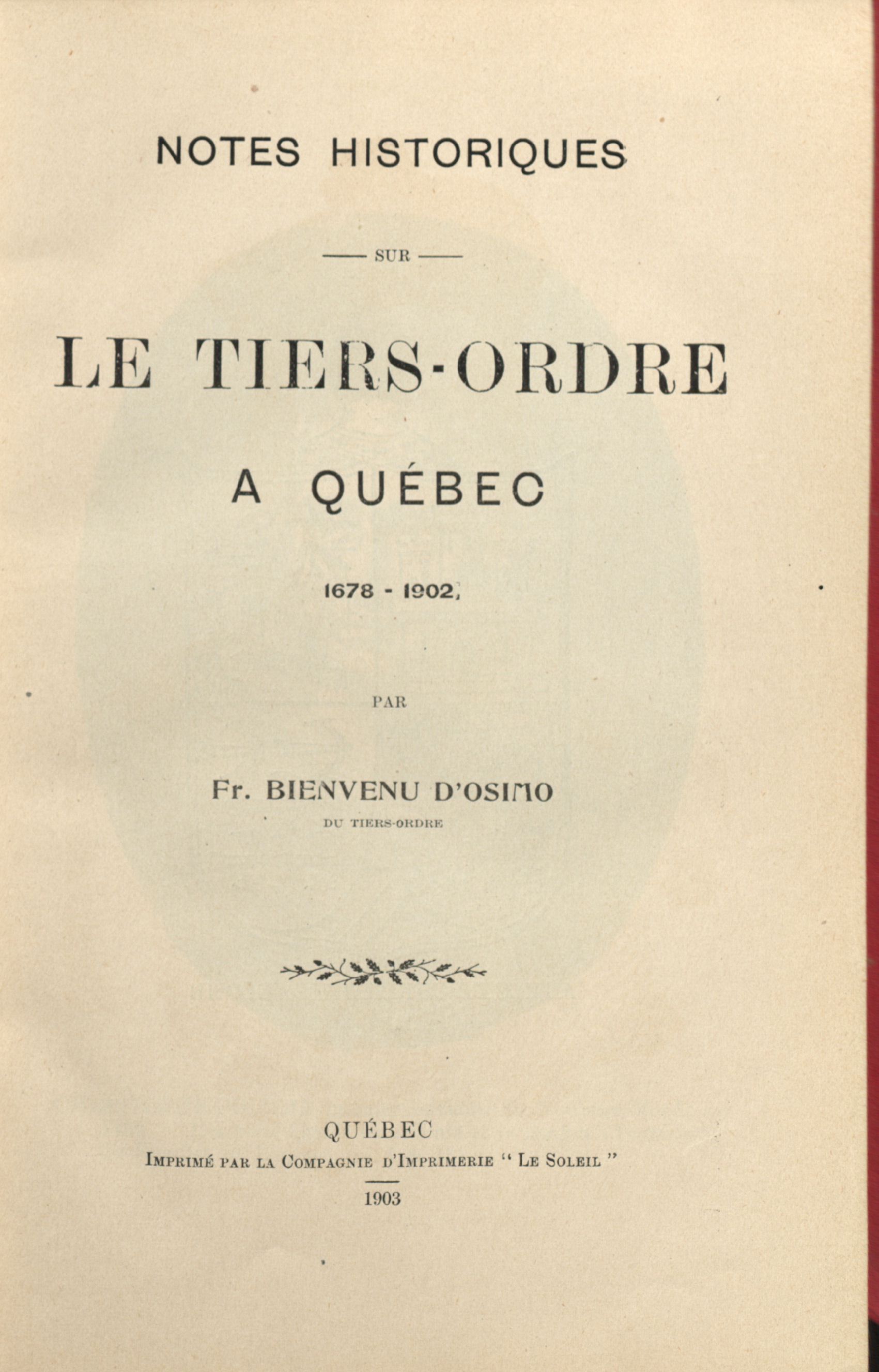 Notes historiques sur le Tiers-ordre à Québec, 1678-1902.