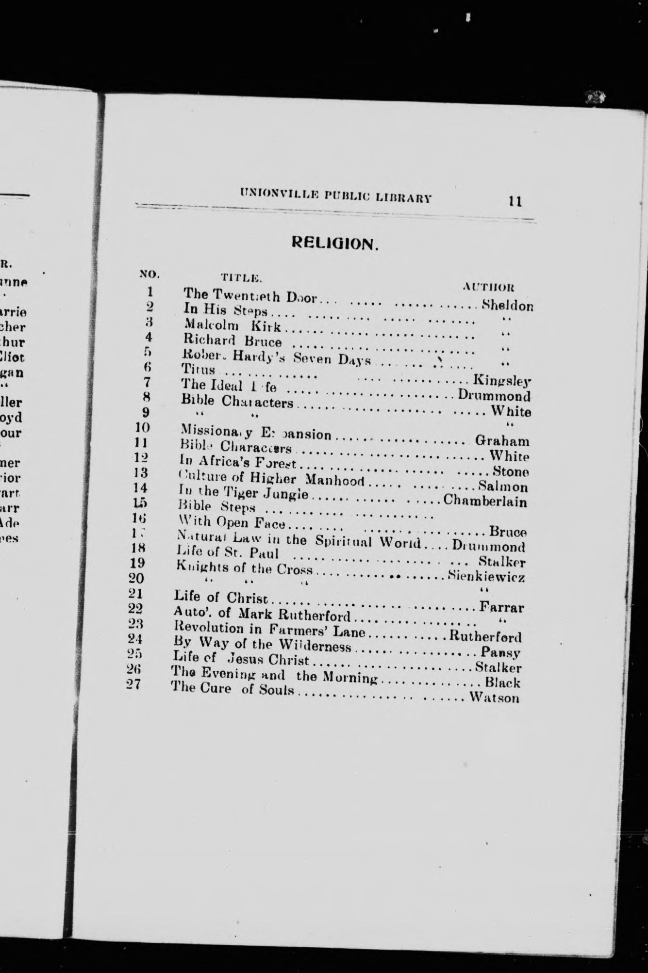[Unionville, Ont.? : The Library?], 1904.; 25 images, 24 avec recherche en texte intégral