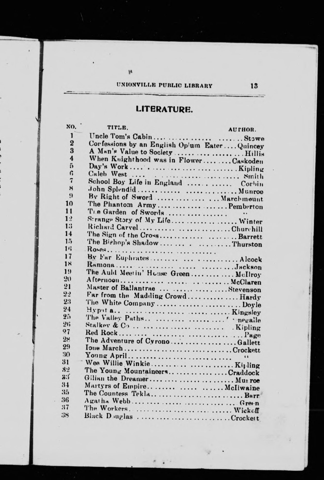[Unionville, Ont.? : The Library?], 1904.; 25 images, 24 avec recherche en texte intégral