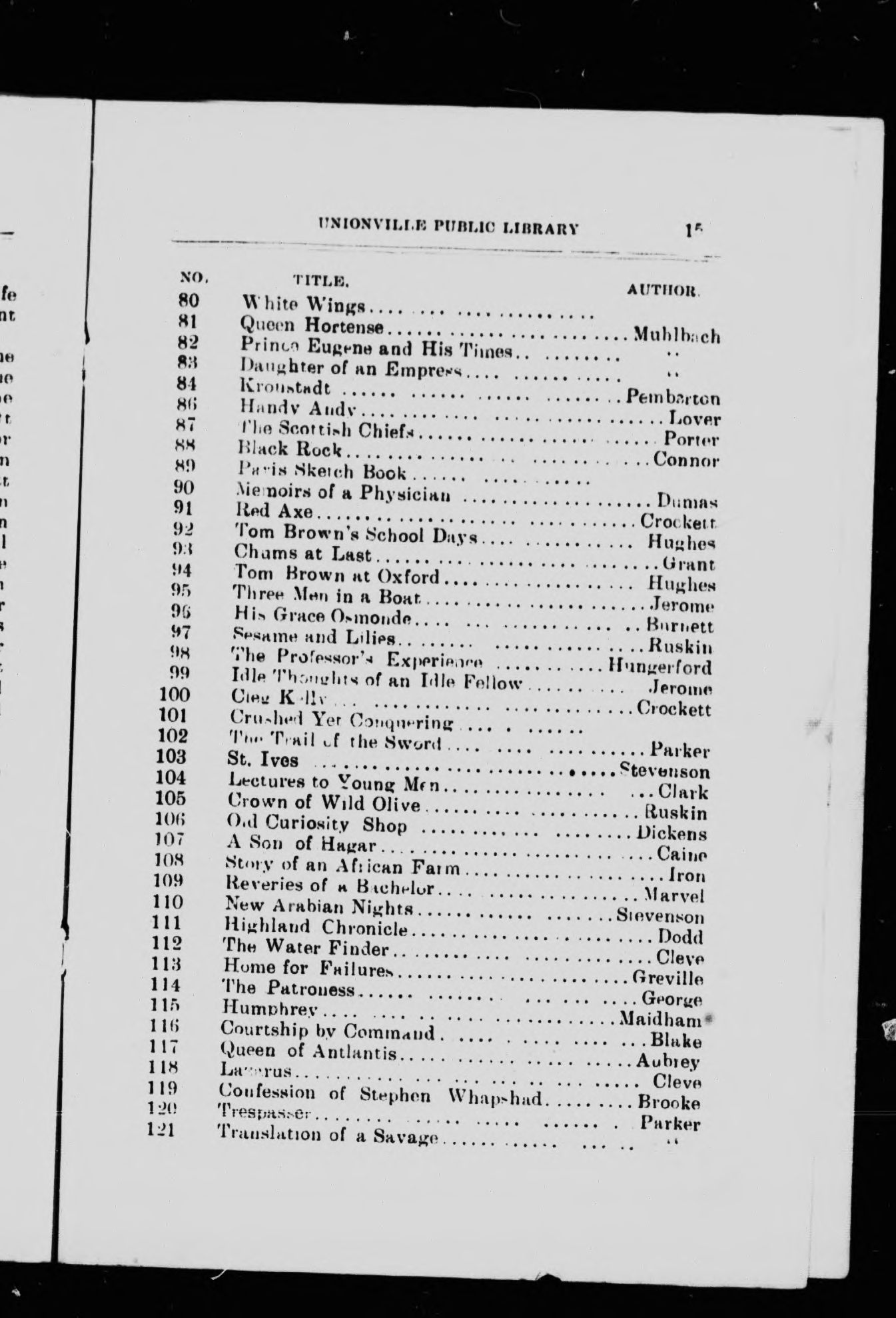 Catalogues de bibliothèques -- Ontario -- Unionville. - Document original