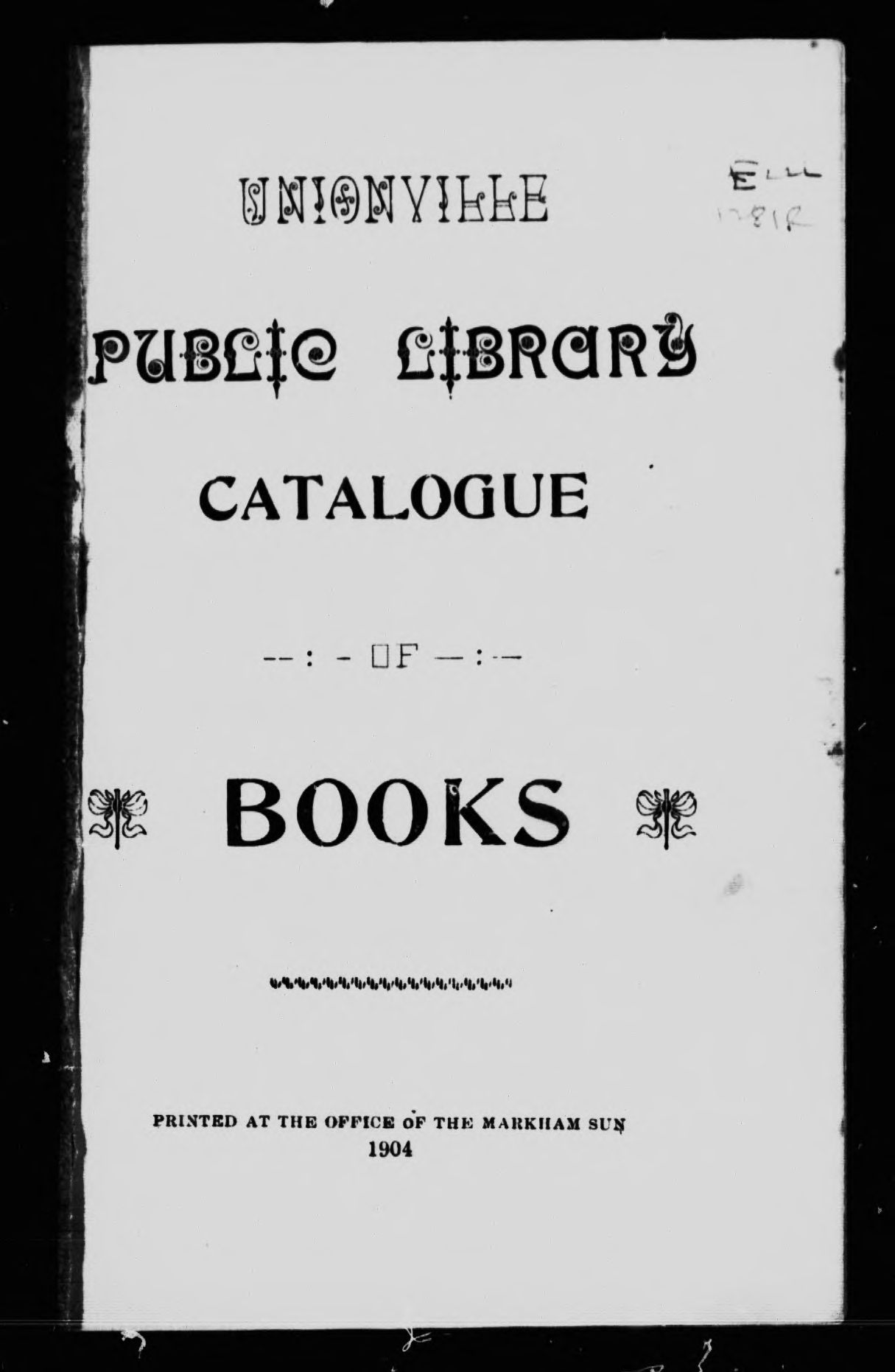 Catalogues de bibliothèques -- Ontario -- Unionville. - Document original