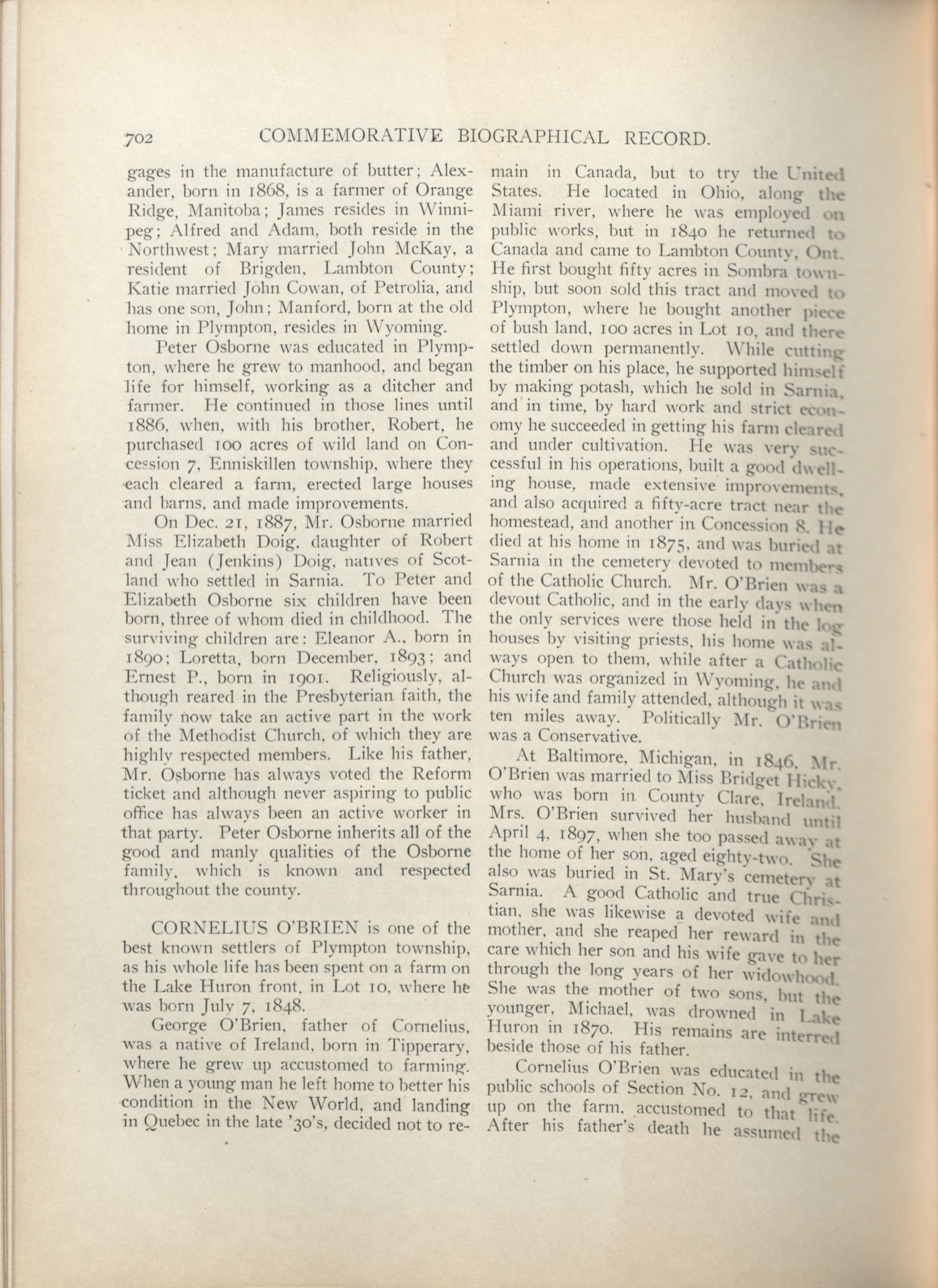 Commemorative biographical record of the County of Lambton, Ontario : containing biographical sketches of prominent and representative citizens and many of the early settled families
