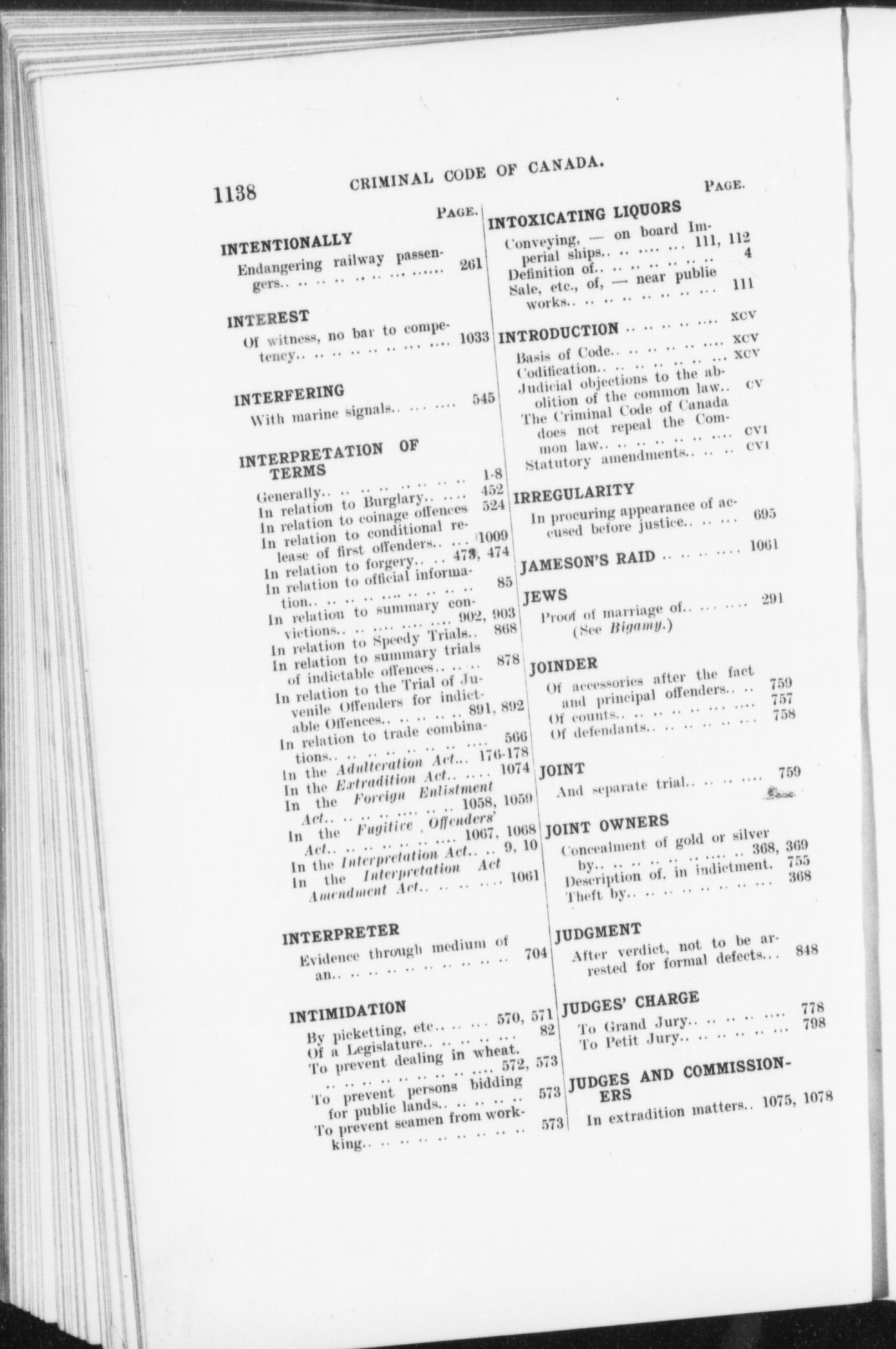 The Criminal code of Canada and the Canada Evidence Act : with their amendments, including the amending acts of 1900 and 1901 : and extra appendices containing the Imperial Criminal Evidence Act, the Foreign Enlistment Act, the Canadian Interpretation Act Amendment Act, the Victoria Day Act, the Demise of the Crown Acts, the Alien Labor Act, the Yukon Territory Acts, the Canadian Fugitive Offenders' Act and Extradition Acts, the Extradition Convention with the United States, and a list of extradition treaties, etc