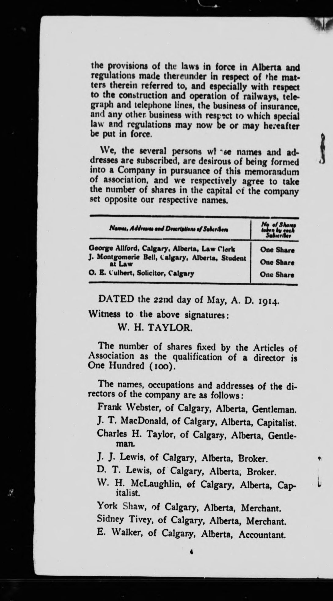 Dated (pages 7): 22nd Day of May, A.D., 1914.