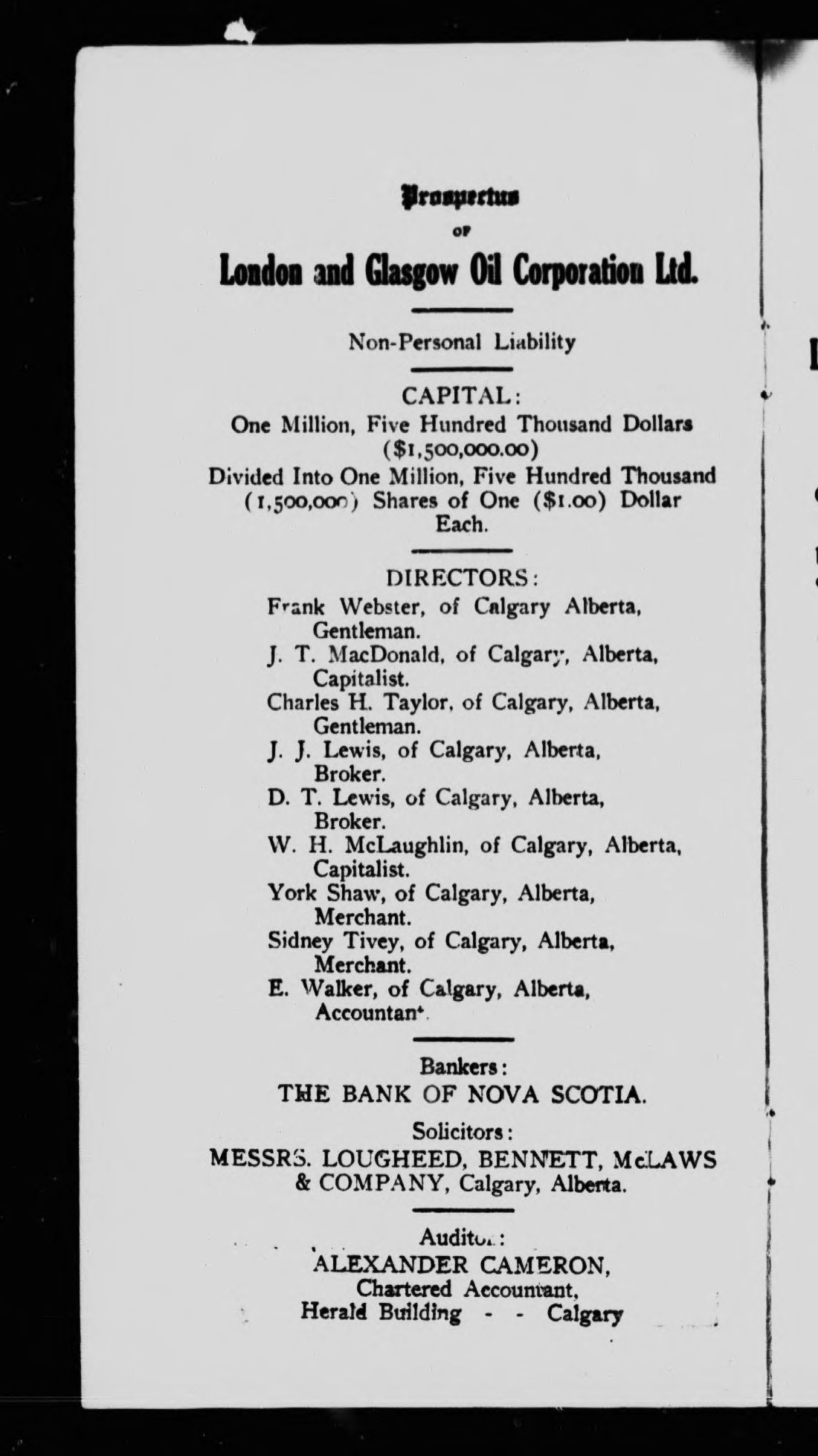 London and Glasgow Oil Corporation.