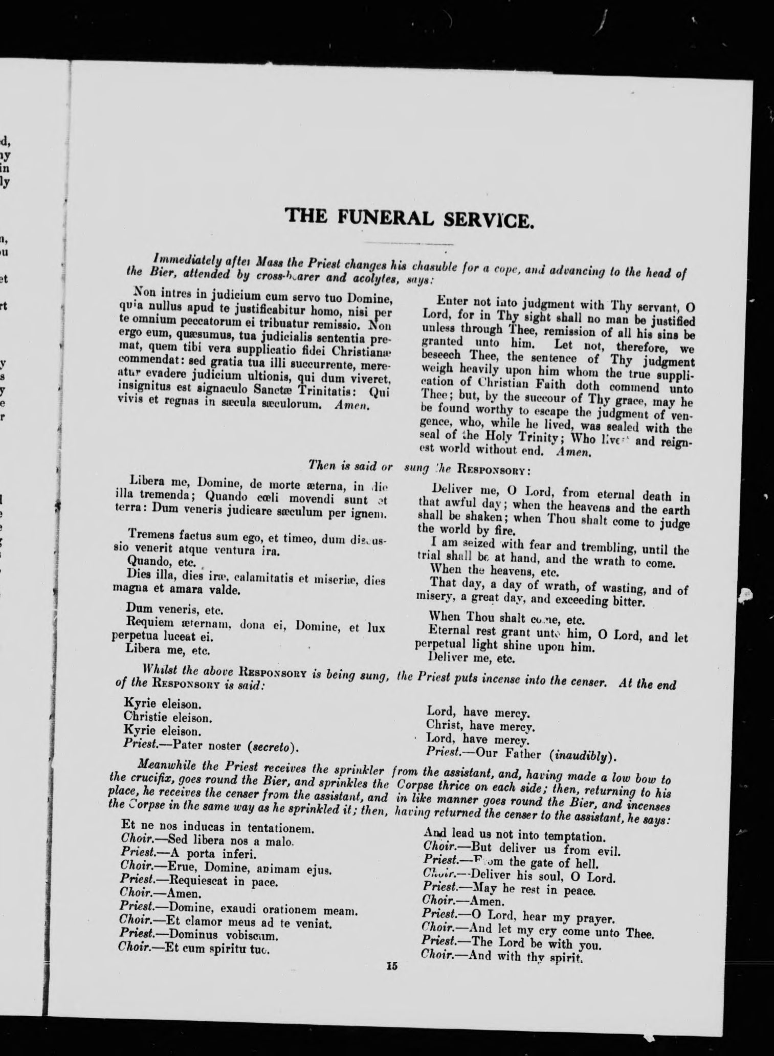 - The Mass and funeral service of the late Rt. Hon. Sir Wilfrid Laurier, D.C., G.C.M.G. at the Basilica, Ottawa, 22nd February 1919.
