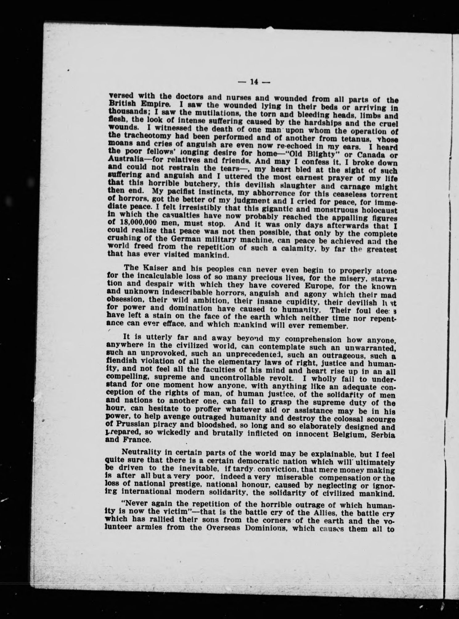World War, 1914-1918.