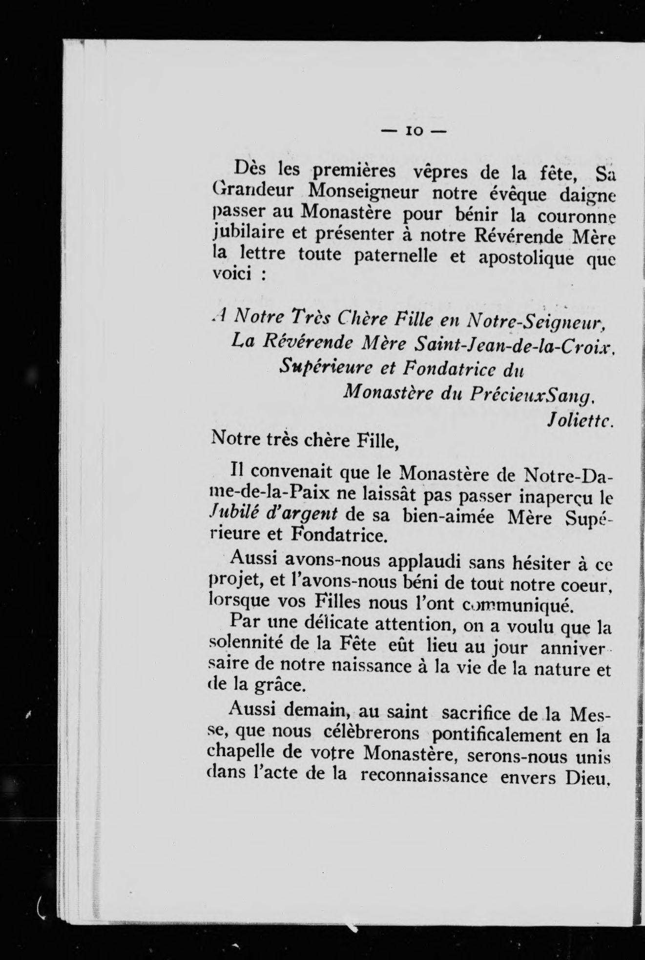 Monastère du Précieux-Sang (Joliette, Québec) -- Anniversaires, etc. - Document original