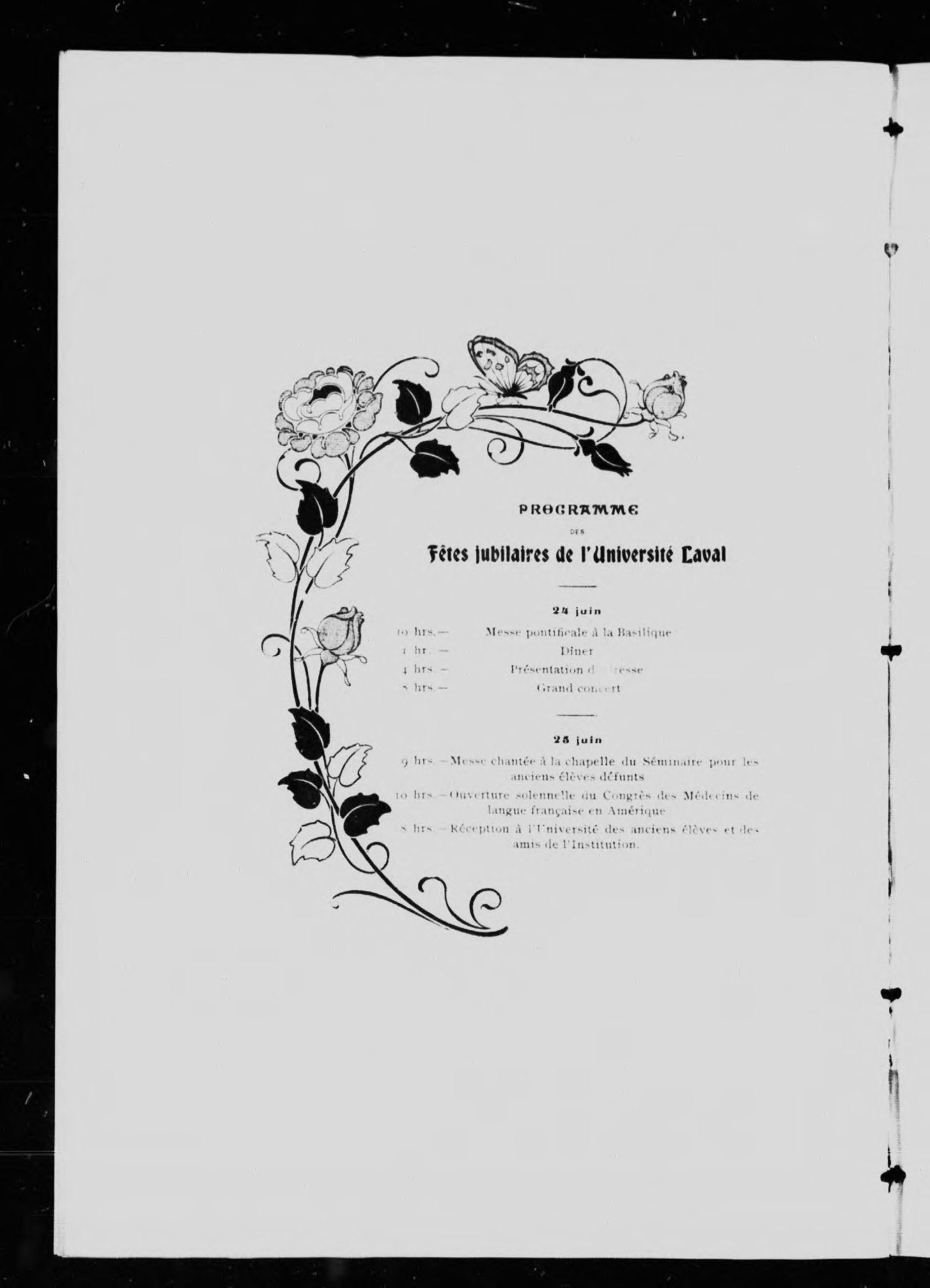 Cinquantième anniversaire de la fondation de l'Université Laval : programme officiel complet des fêtes artistiques, lundi, mardi et mercredi, 23, 24 et 25 juin 1902. - Adresse bibliographique