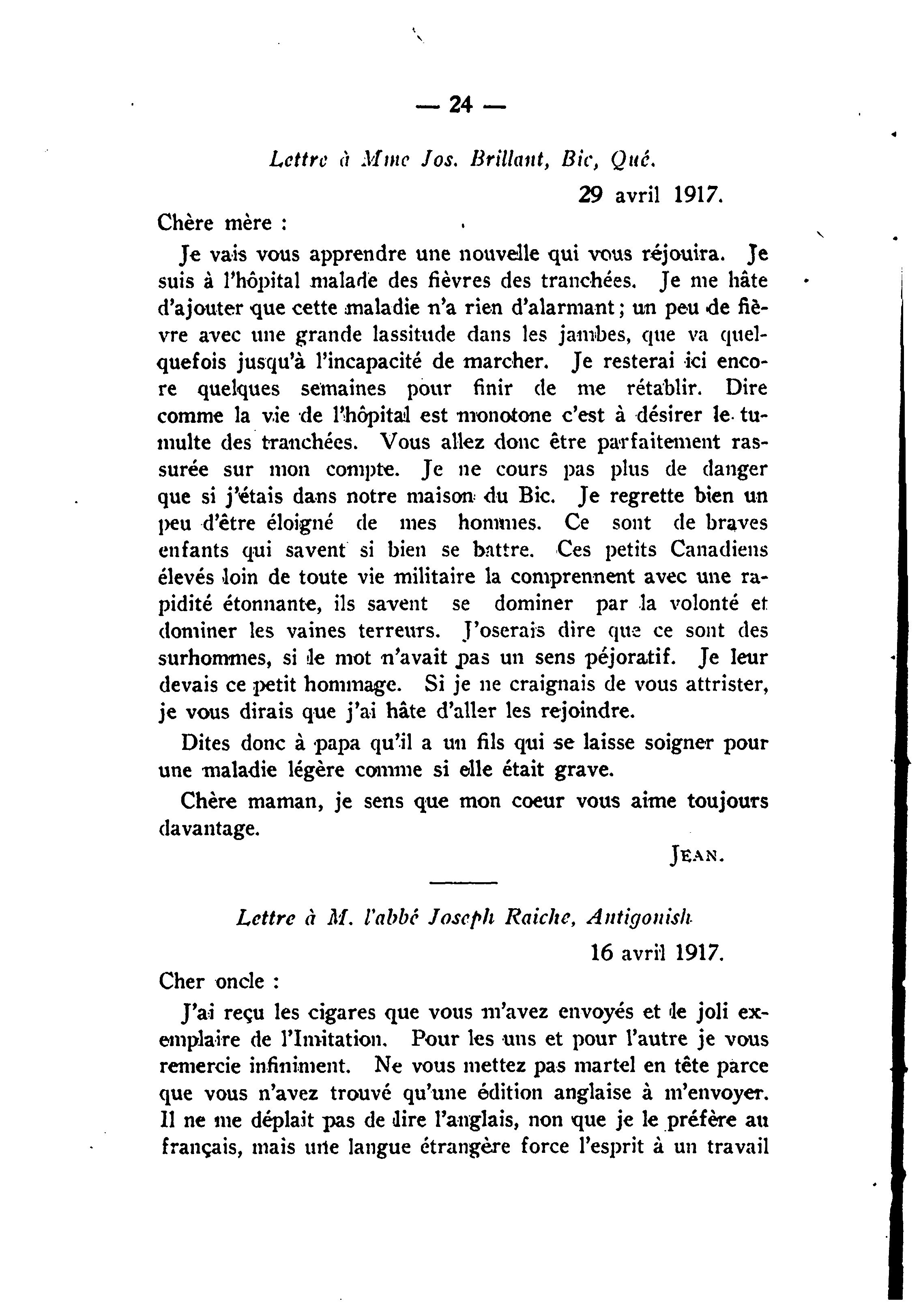 - Le Capitaine Jean Brillant, C.V., C.M.