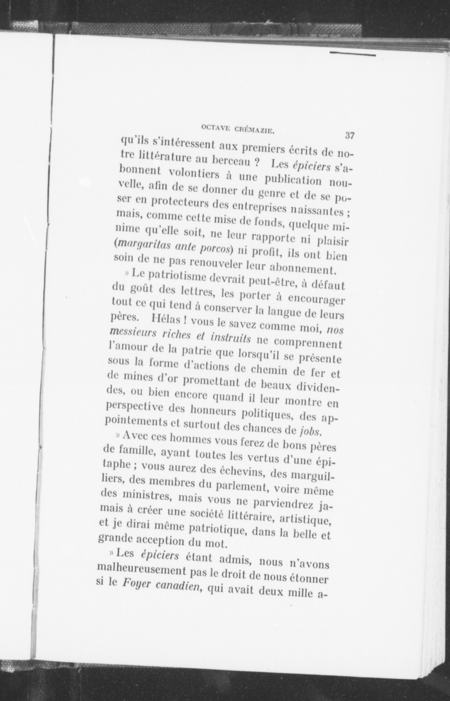 Le texte est précédé d'une notice bibliographique par H.R. Casgrain (pages [ 11]-20) et de lettres de Crémazie à Casgrain (pages [21]-109)|