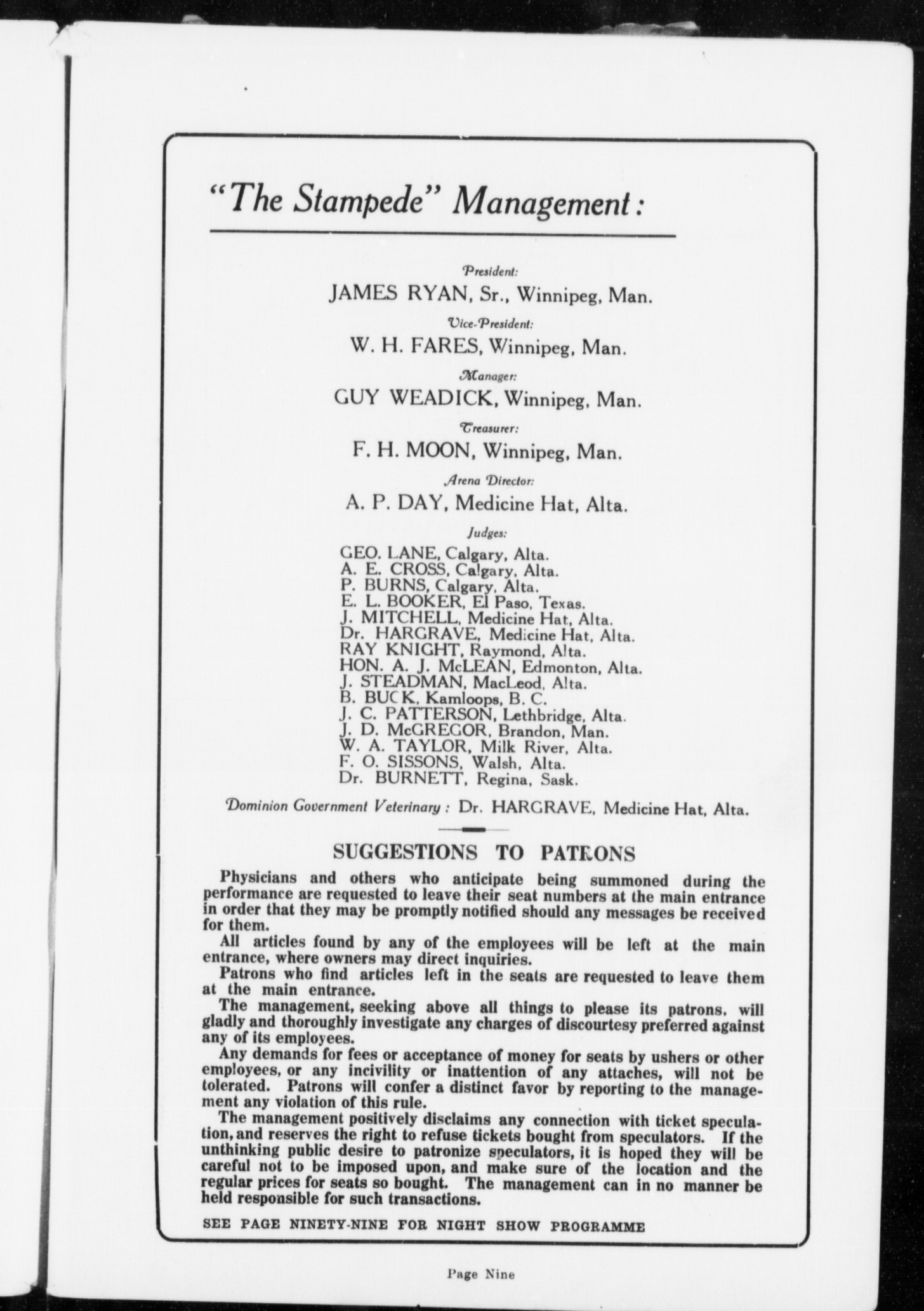 The Stampede : Canada's 2nd annual world's greatest frontier days' celebration : Winnipeg, Canada, August 9th-16th inclusive, 1913 : official program and souvenir. - Published