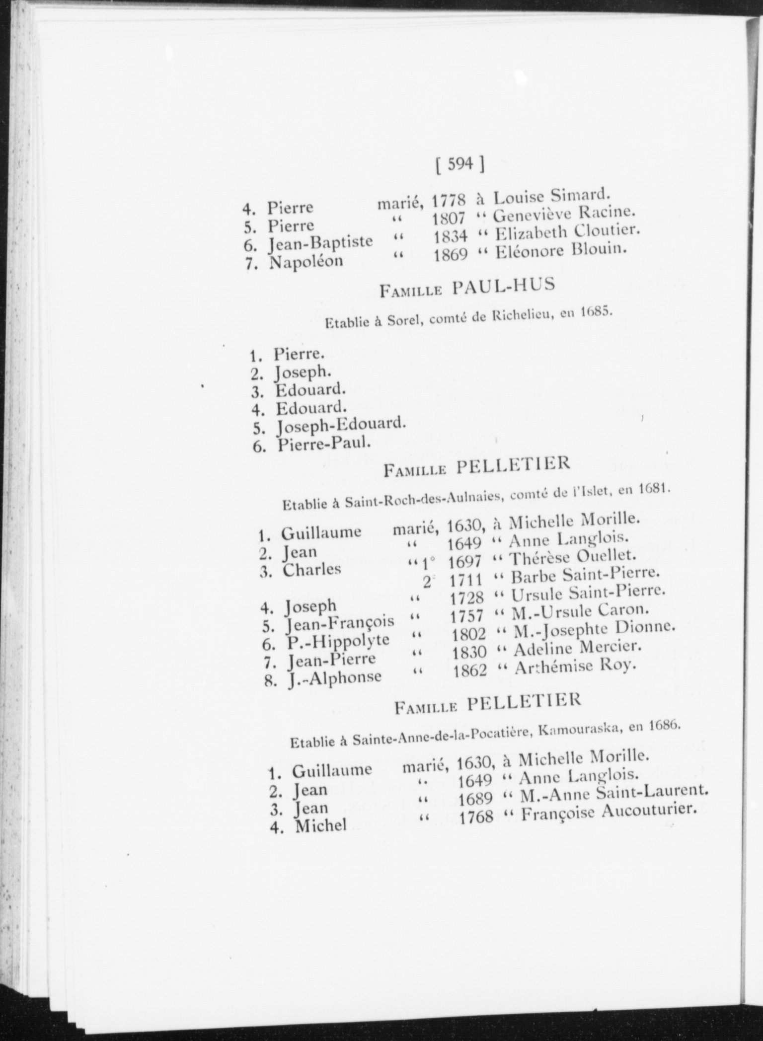 "Liste des familles de la province de Québec dont les descendants occupent (en 1908) la terre ancestrale depuis deux cents ans ou plus": pages [517]-611.