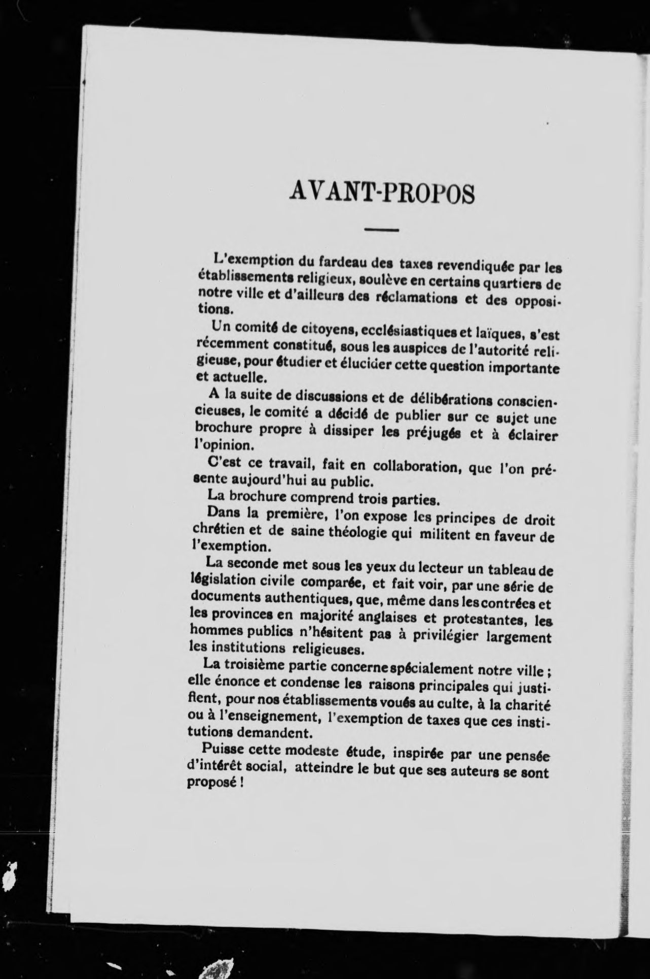 Les Corporations religieuses et l'exemption de taxes : étude juridique et statistique.
