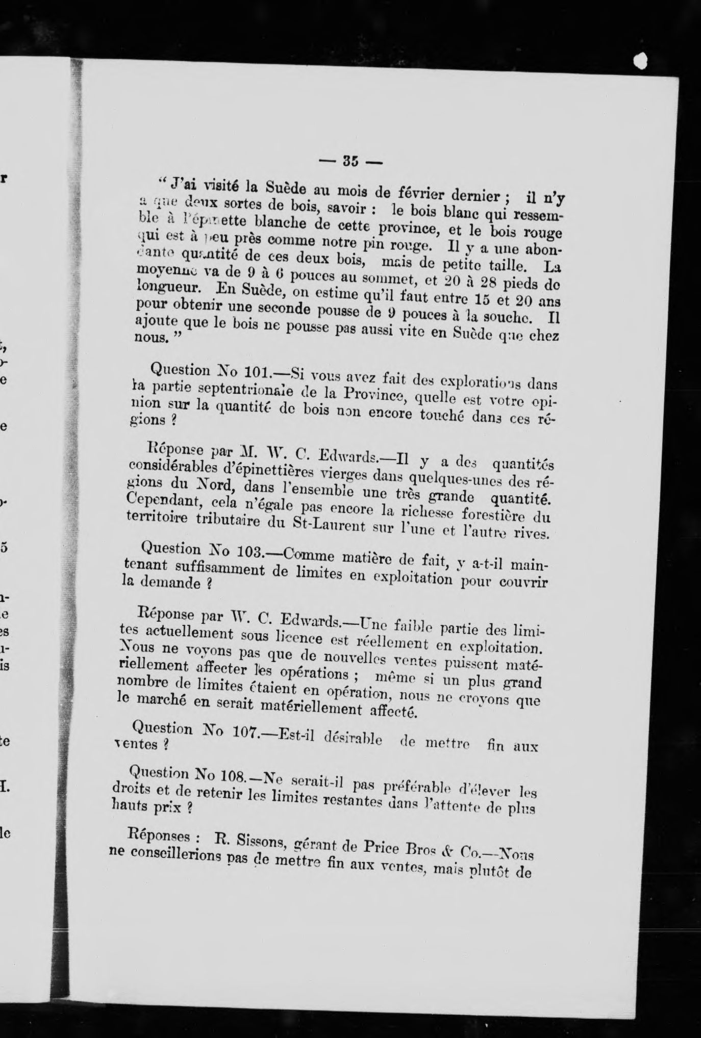 Discours de l'Hon. S.N. Parent, premier ministre, sur la question des droits de coupe sur le bois à pulpe :