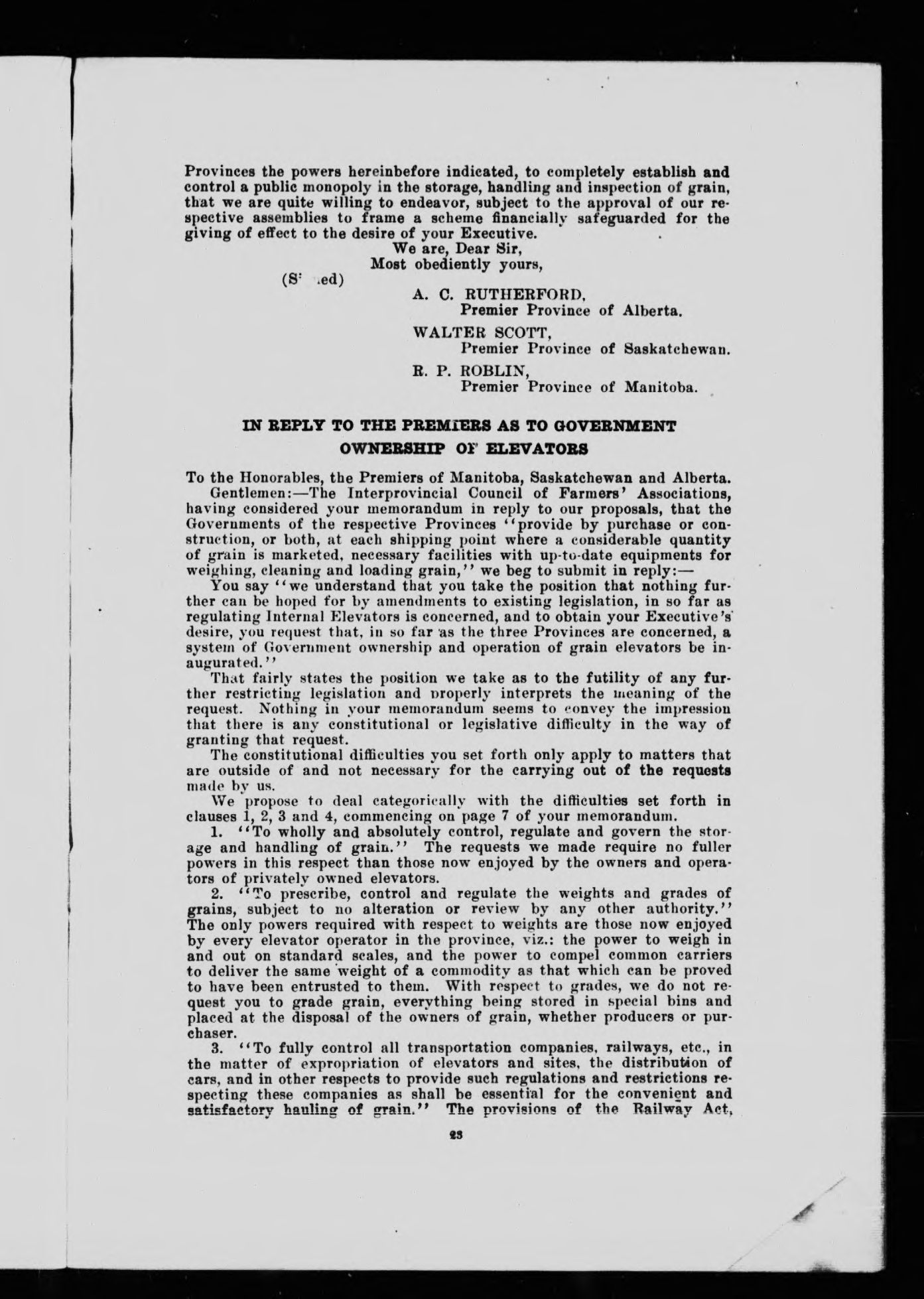 Review of negotiations that led to government ownership and operation of elevators in Manitoba and cause of failure. - Adresse bibliographique