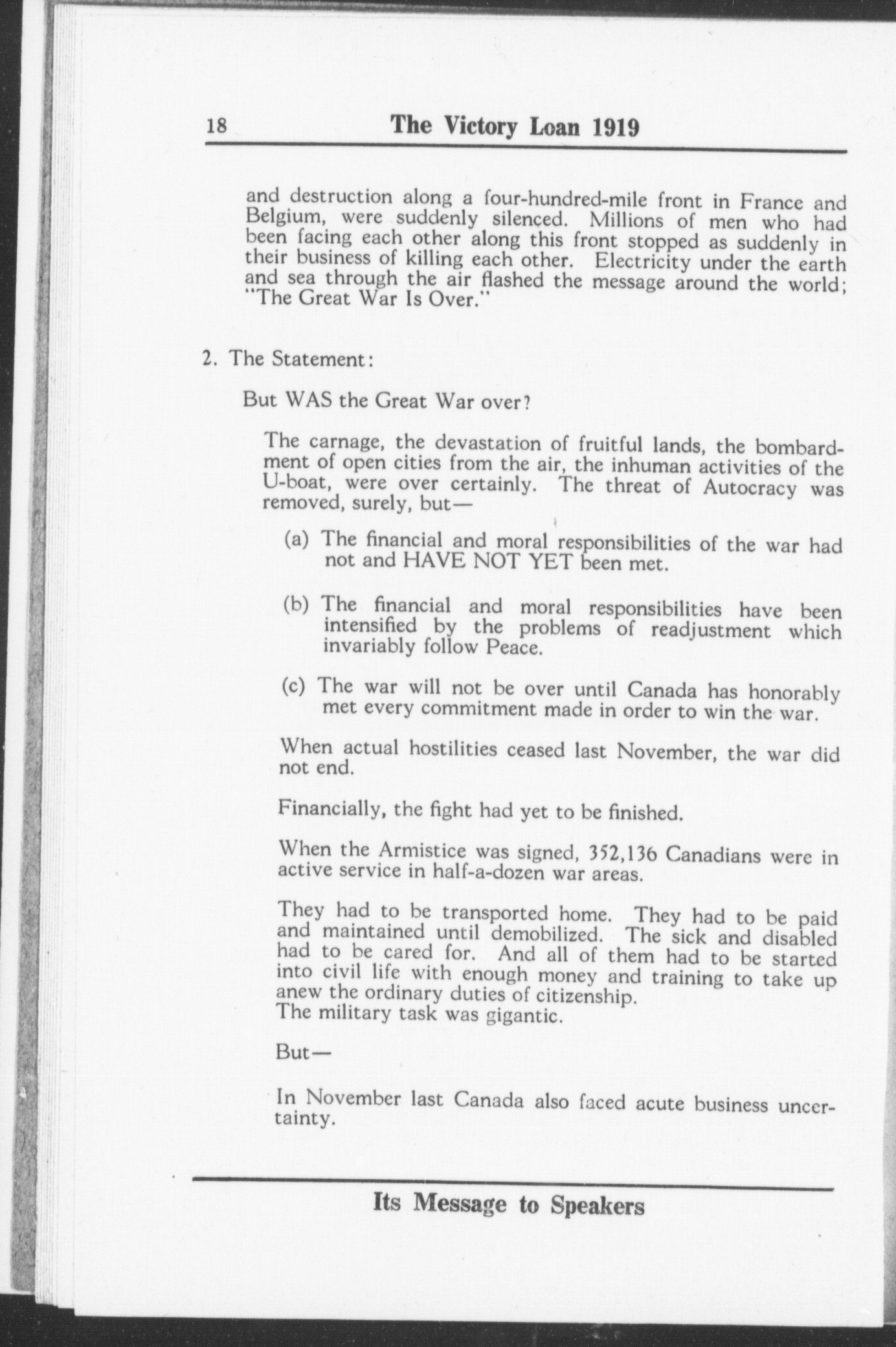 Aide [Canada] : Dominion Publicity Committee, Victory Loan 1919, [1919?]; 36 images, 35 avec recherche en texte intégral