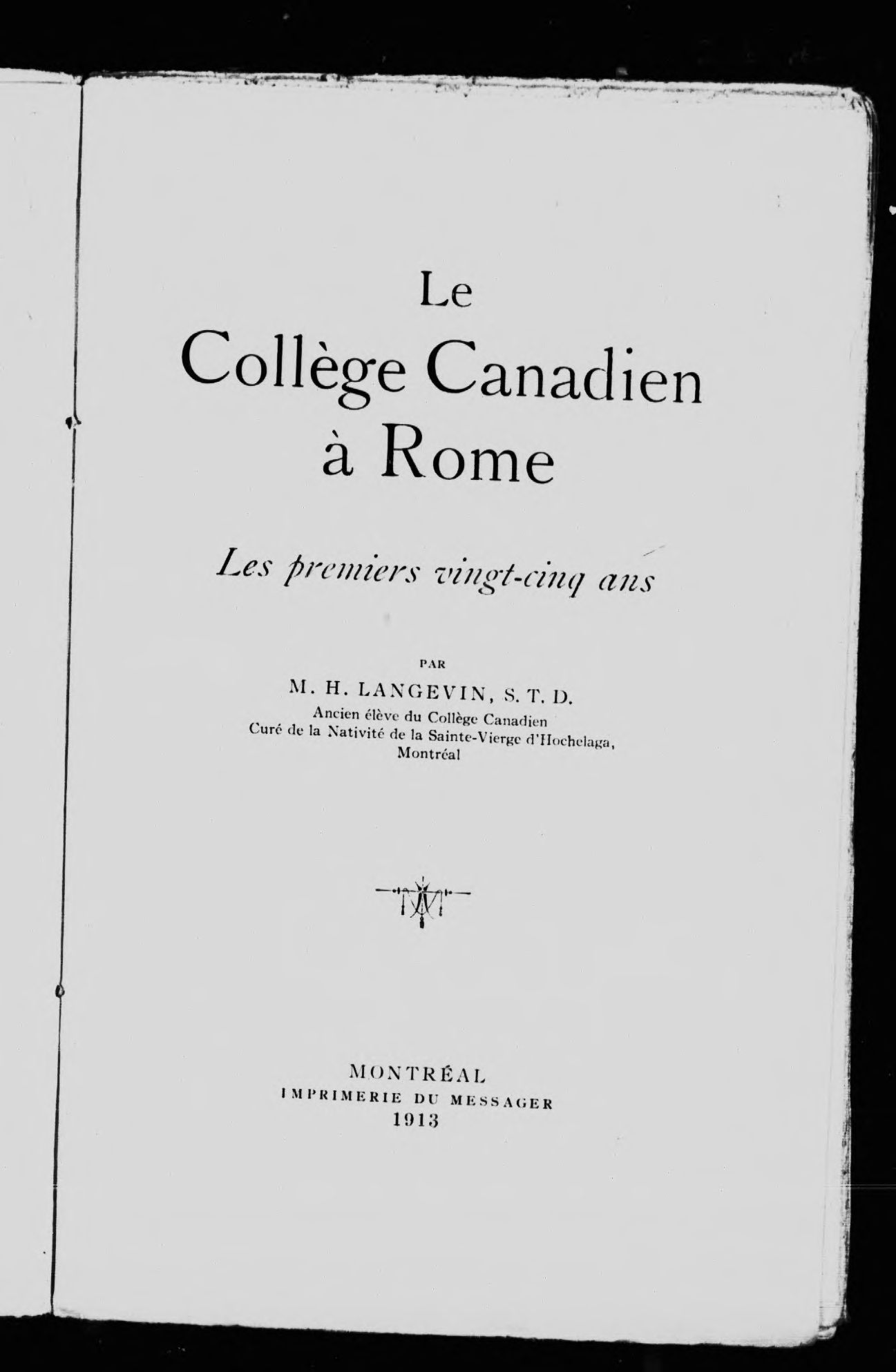 - Le Collège canadien à Rome : les premiers vingt-cinq ans