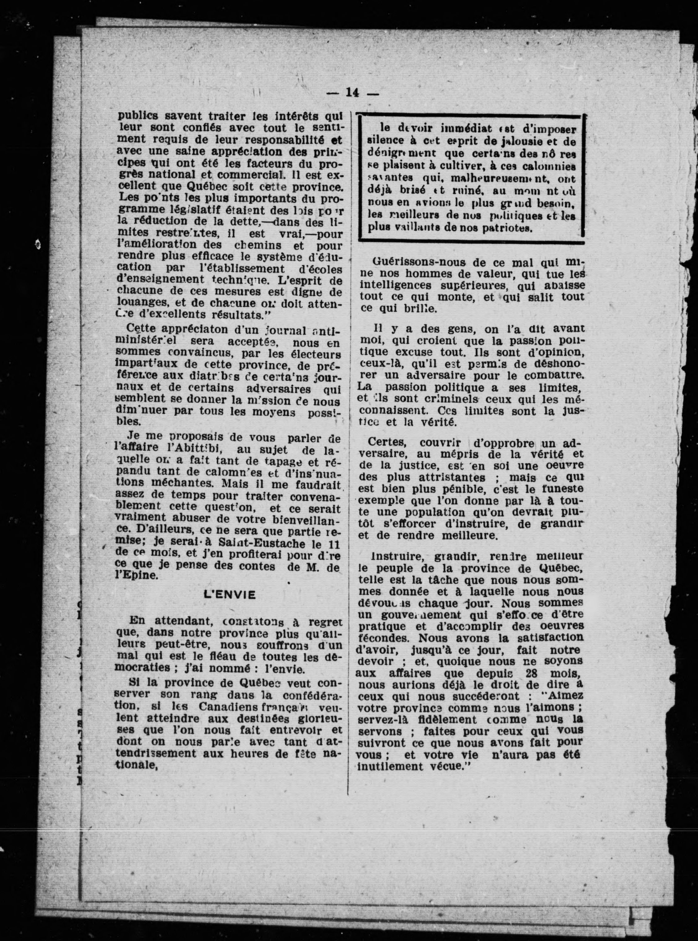 Quebec (Province) -- Politics and government -- 1897-1936.