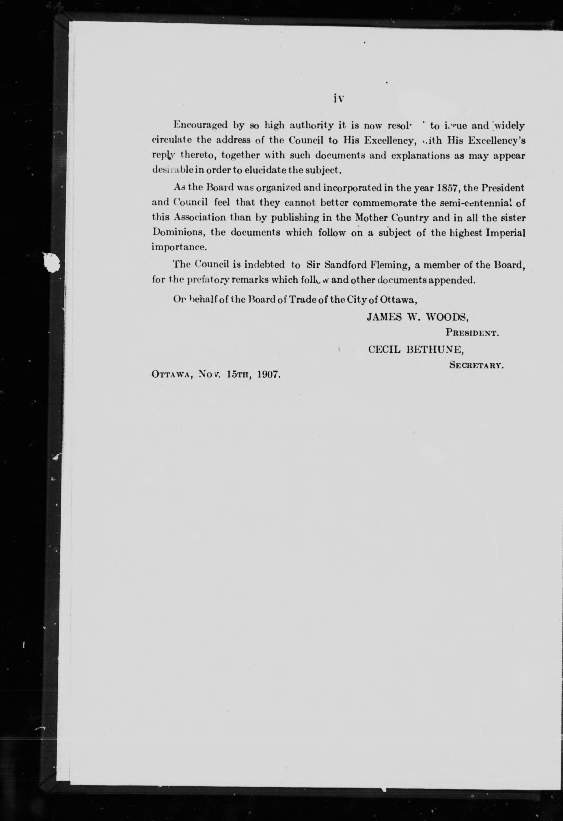 Dated (pages iv): Ottawa, Nov. 15th, 1907.