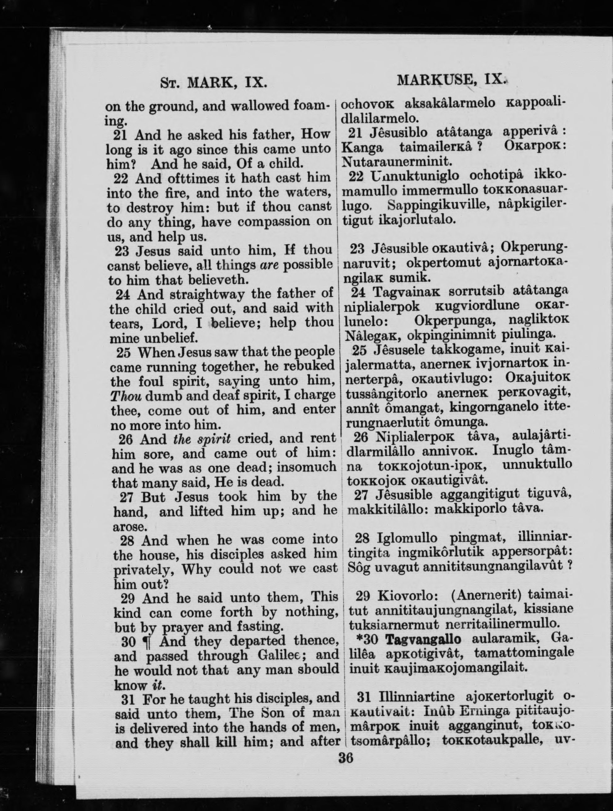 St. Mark's Gospel in English and Eskimo (Labrador dialect)