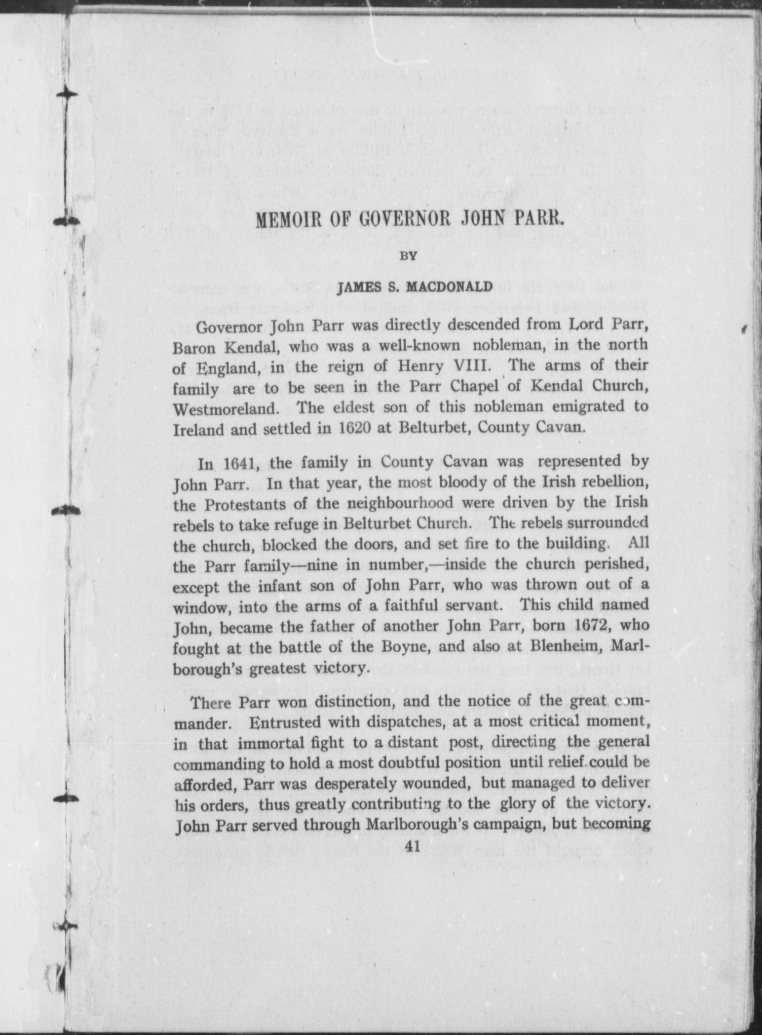 Four eminent rulers of Nova Scotia, eighteenth century : Hon. Edward Cornwallis, founder and governor, 1749- 1752 ; Goveror [sic] Charles Lawrence, 1752-1760 ; Governor John Parr, 1782-1791 ; Hon. Richard Bukeley, Secretary of the Province, 1749- 1799 : historical papers - Adresse bibliographique