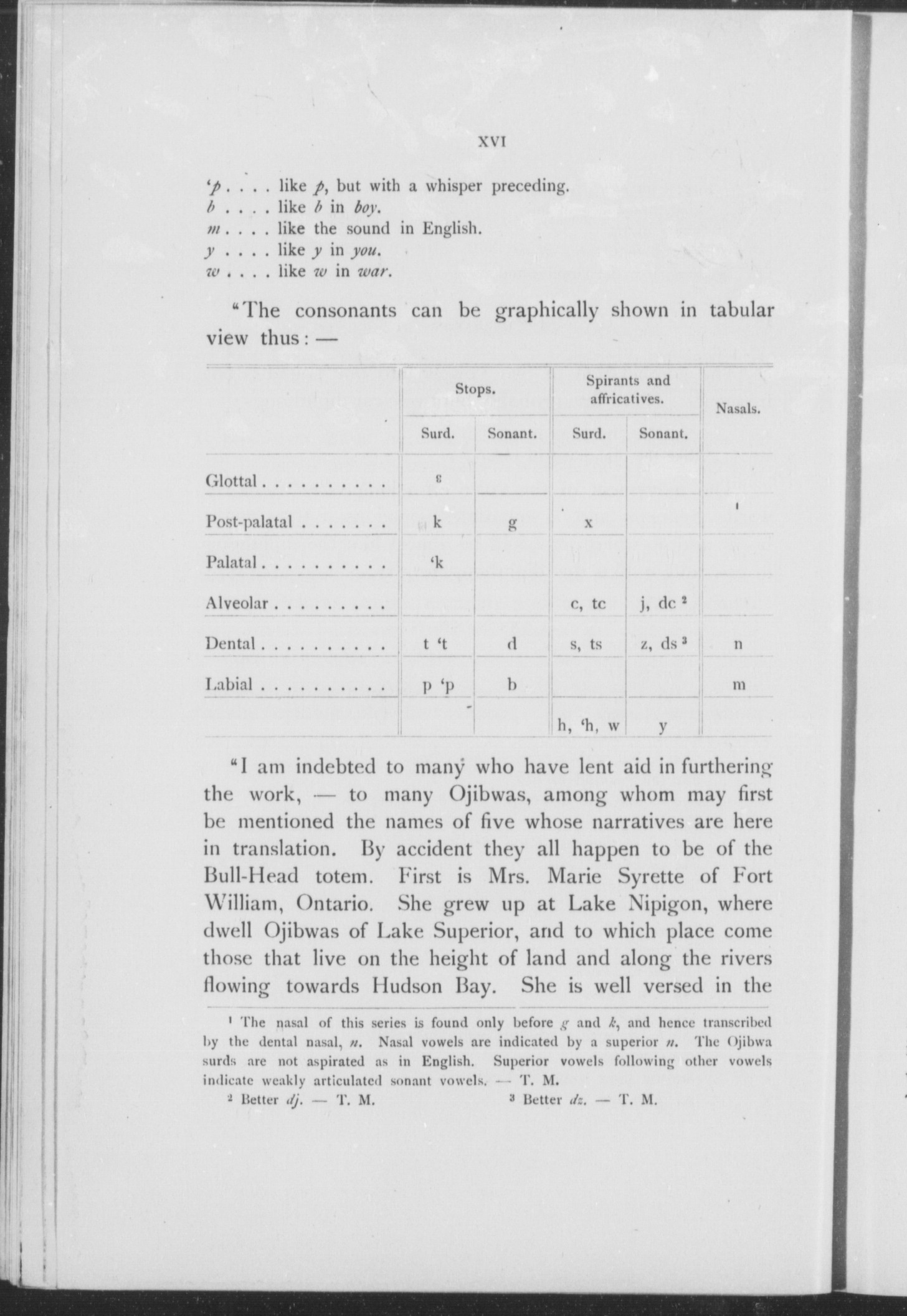 Text in Ojibwa with English translation, on facing pages.