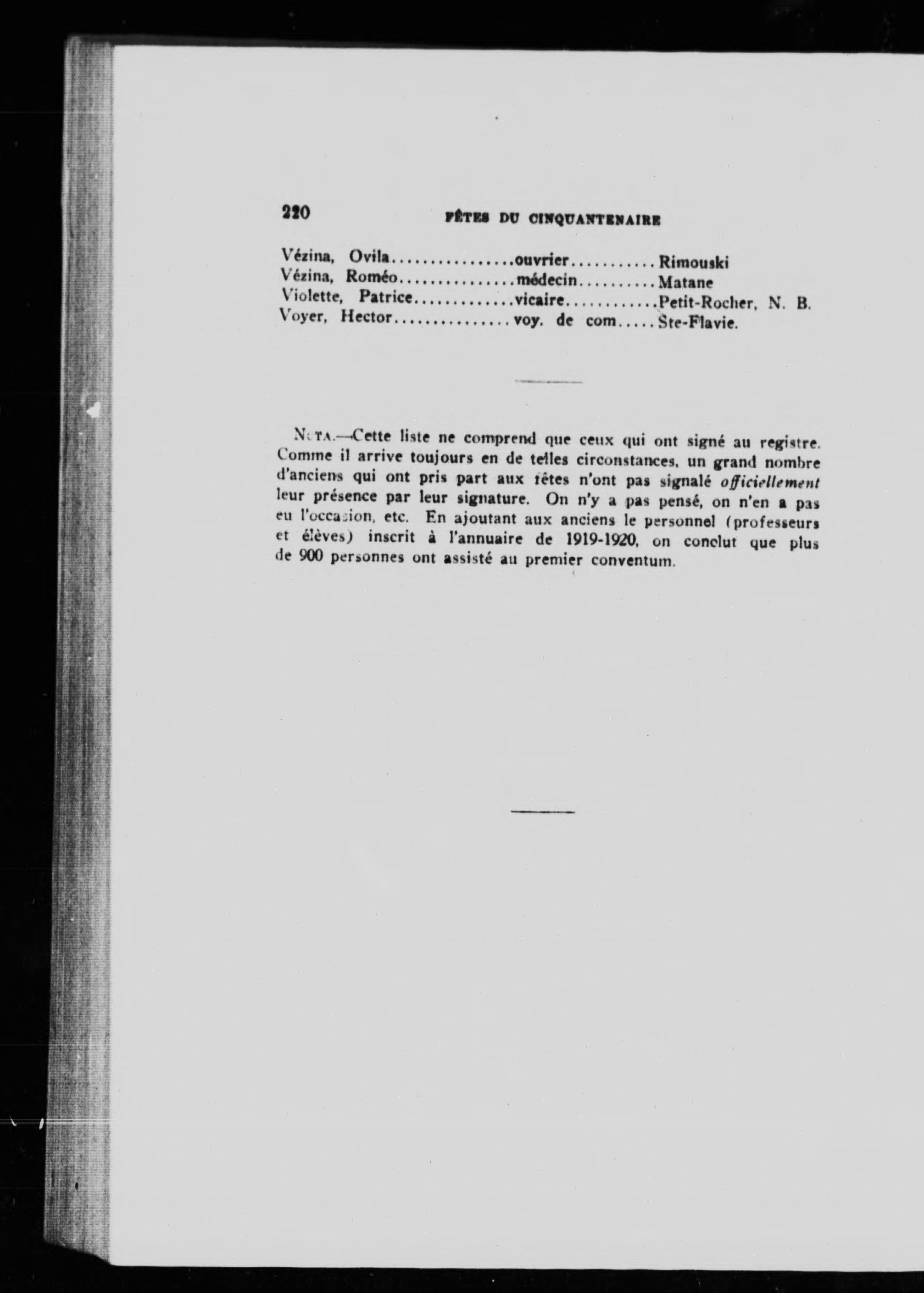 - Séminaire de Rimouski : fêtes du cinquantenaire, les 22 et 23 juin 1920.