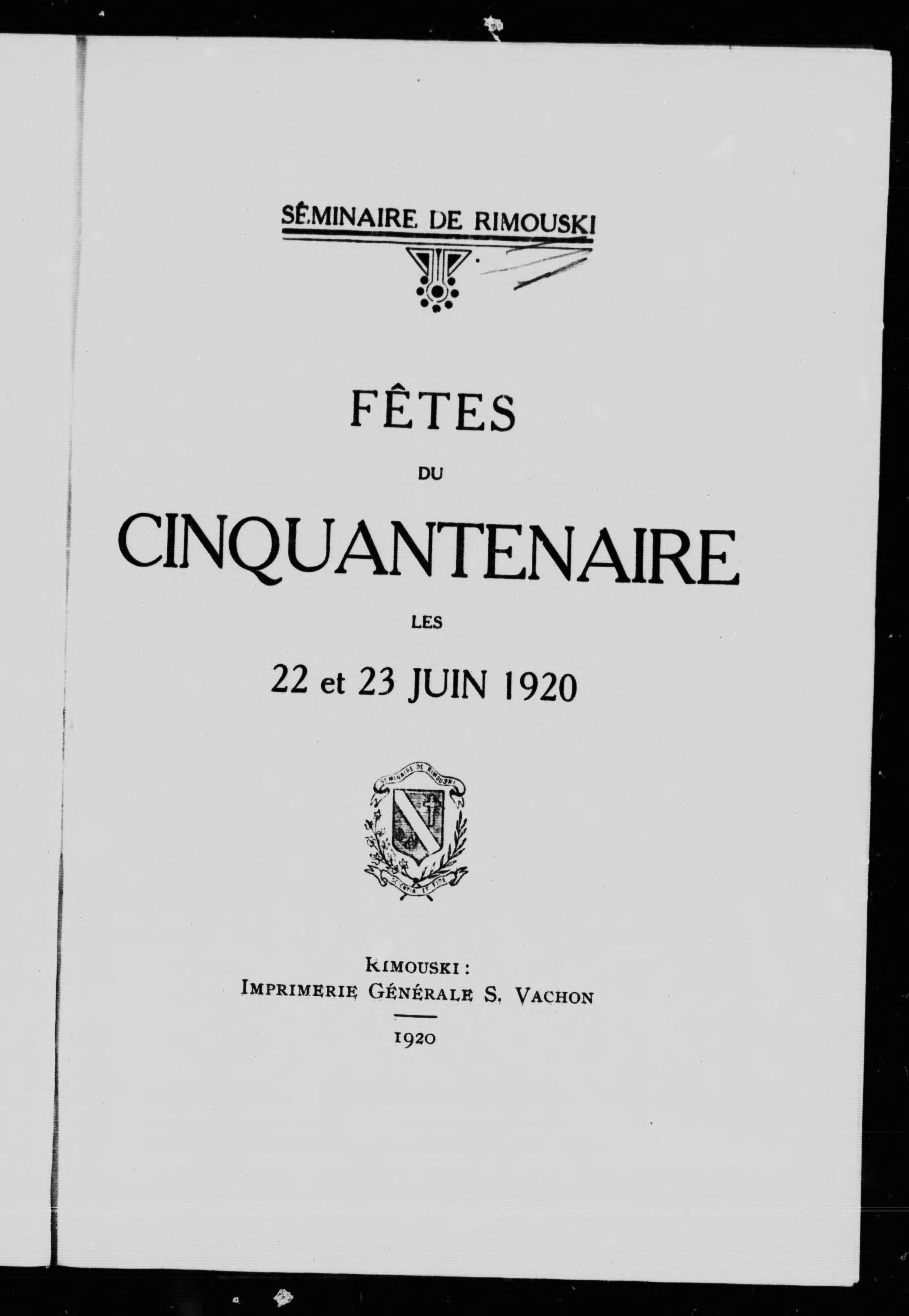 - Séminaire de Rimouski : fêtes du cinquantenaire, les 22 et 23 juin 1920.
