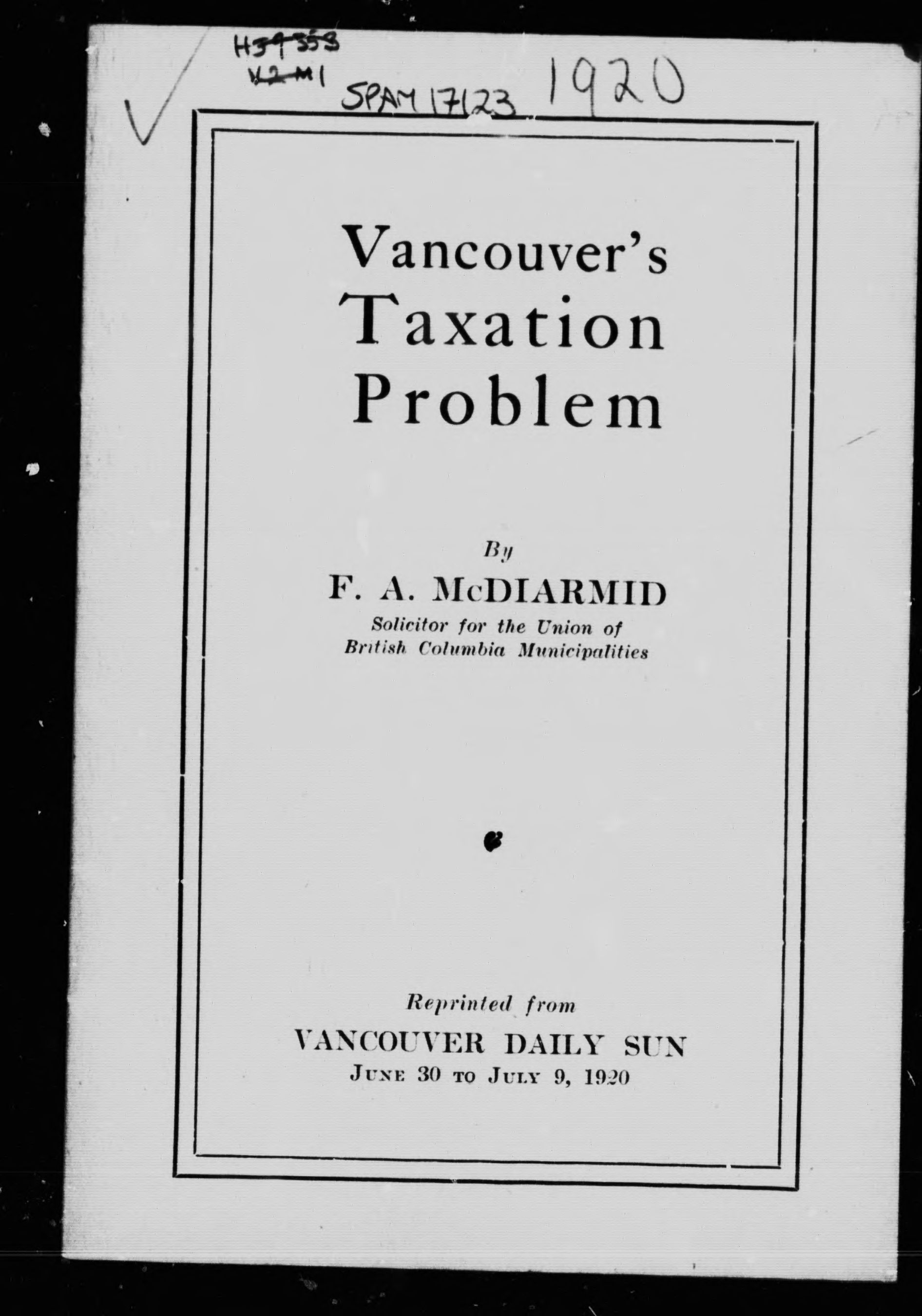 "Reprinted from Vancouver Daily Sun June 30 to July 9, 1920."